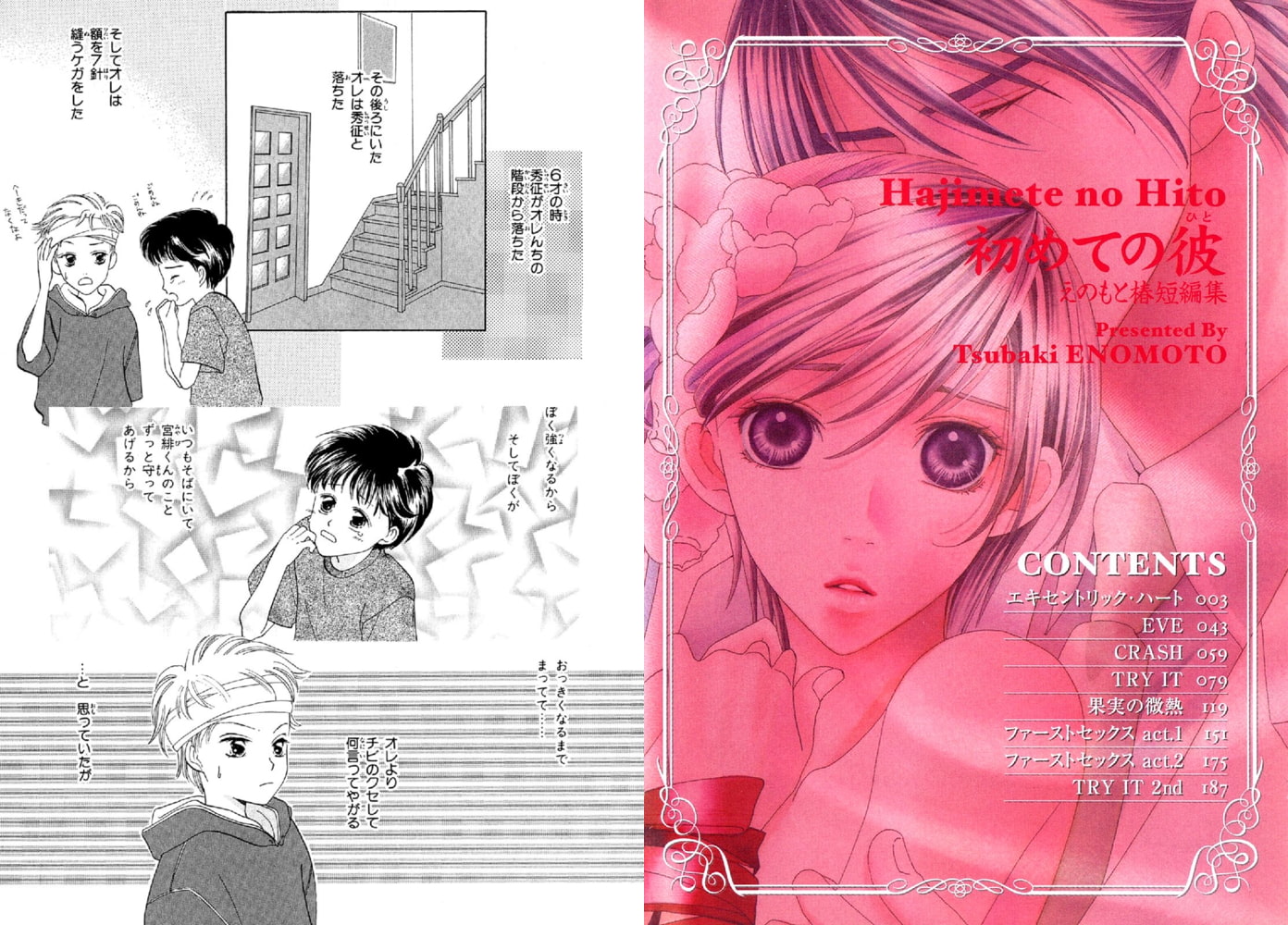 「命令する側」「言うことをきく側」。そんな関係の20年来の幼なじみ・秀征と宮緋。しかしある事件をきっかけにして、お互いの気持ちが静かに通いあって!?その他、“初めての男”をテーマに描かれた、愛とエロスのBL短編集。