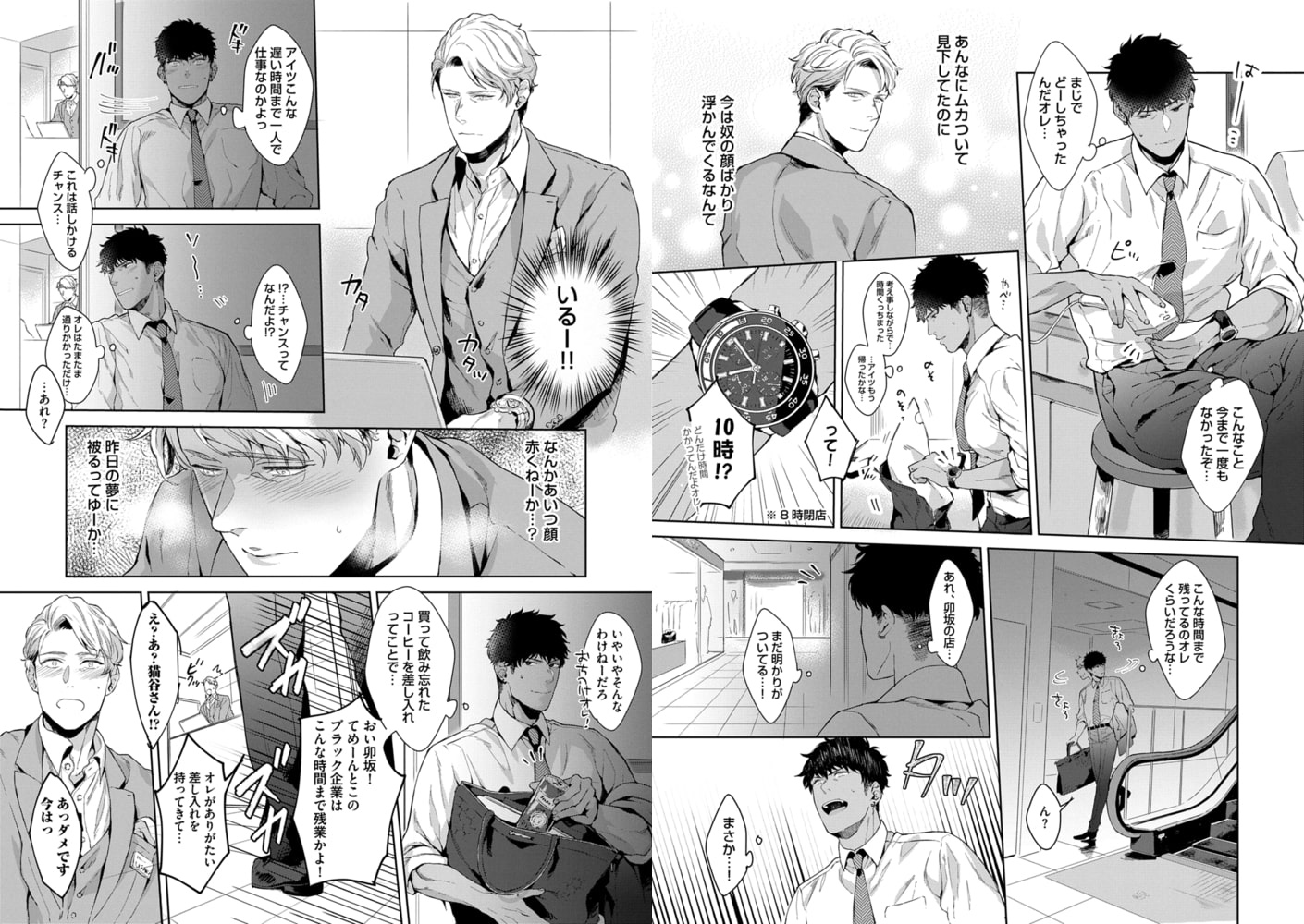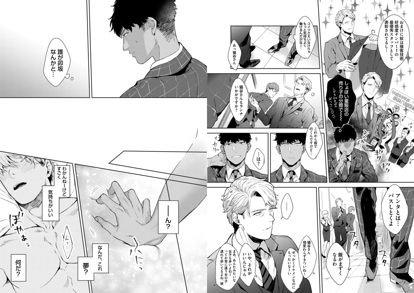 高級スーツブランドの販売員・猫谷は同じ百貨店内で働くイケメン卯坂を一方的にライバル視していた。自分が一番でないと気が済まない猫谷は卯坂を見るたびにイライラ…。ある日、猫谷は卯坂とセックスする夢を見て夢精する。それにショックを受け、逆に意識するように。その日の閉店後…卯坂が店内で尻丸出しでバイブを入れながら射精するところを目撃してしまい…その後のエロぎる展開にドキドキ間違いなし!!