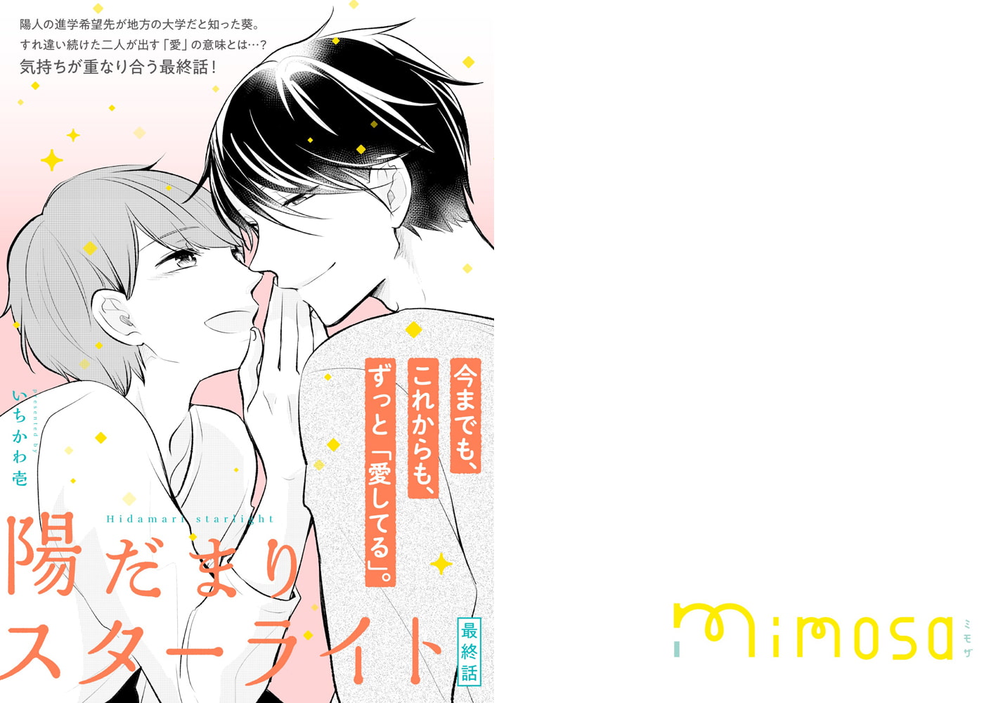 幸せな恋を詰めこんだBLマガジン『mimosa』vol.6の表紙は春之「いつくしむ、さを鹿の声」。8年ぶりに再会した陽介と冬月。高校の頃のように仲良く過ごしながらも、陽介にはとあることが引っかかっていて…。きはら記子とArincoは初登場&新連載スタート! 人気連載作品の最終話から新連載まで、見逃せないラインナップとなっています!【ラインナップ】春之、加藤スス、きはら記子、Arinco、いちかわ壱、青梅あお、オオヒラヨウ、藤谷陽子、箱石タミィ、世