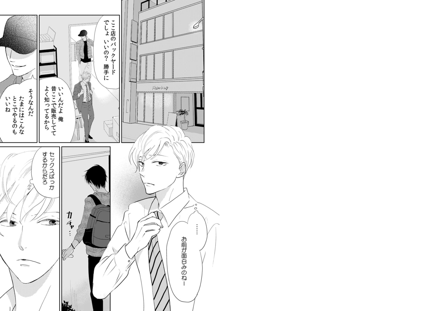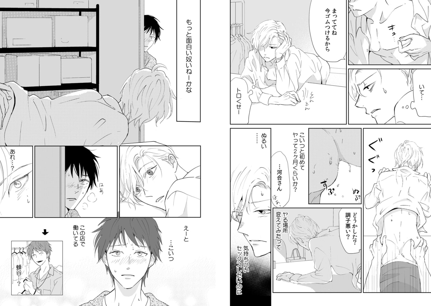 仕事ができて上品で、ショップスタッフからも人気のアパレル営業・河合は、実はドSなヤリマンビッチ。セフレとの単調なセックスに刺激が欲しくて、夜の職場に連れ込んでセックスしてみたものの、イマイチ盛り上がらない。ところが、その様子を後輩の蜂谷が覗いていて、さらに抱かれる河合を見ながらオナニーをし始めた…! 興奮した蜂谷の絡みつくような視線に、河合の下半身も熱くなりついにはイってしまう。久しぶりの快感に戸惑う河合だったけど、それから蜂谷のケモノのような瞳に見つめられると、身体が疼くようになってしまい…!?