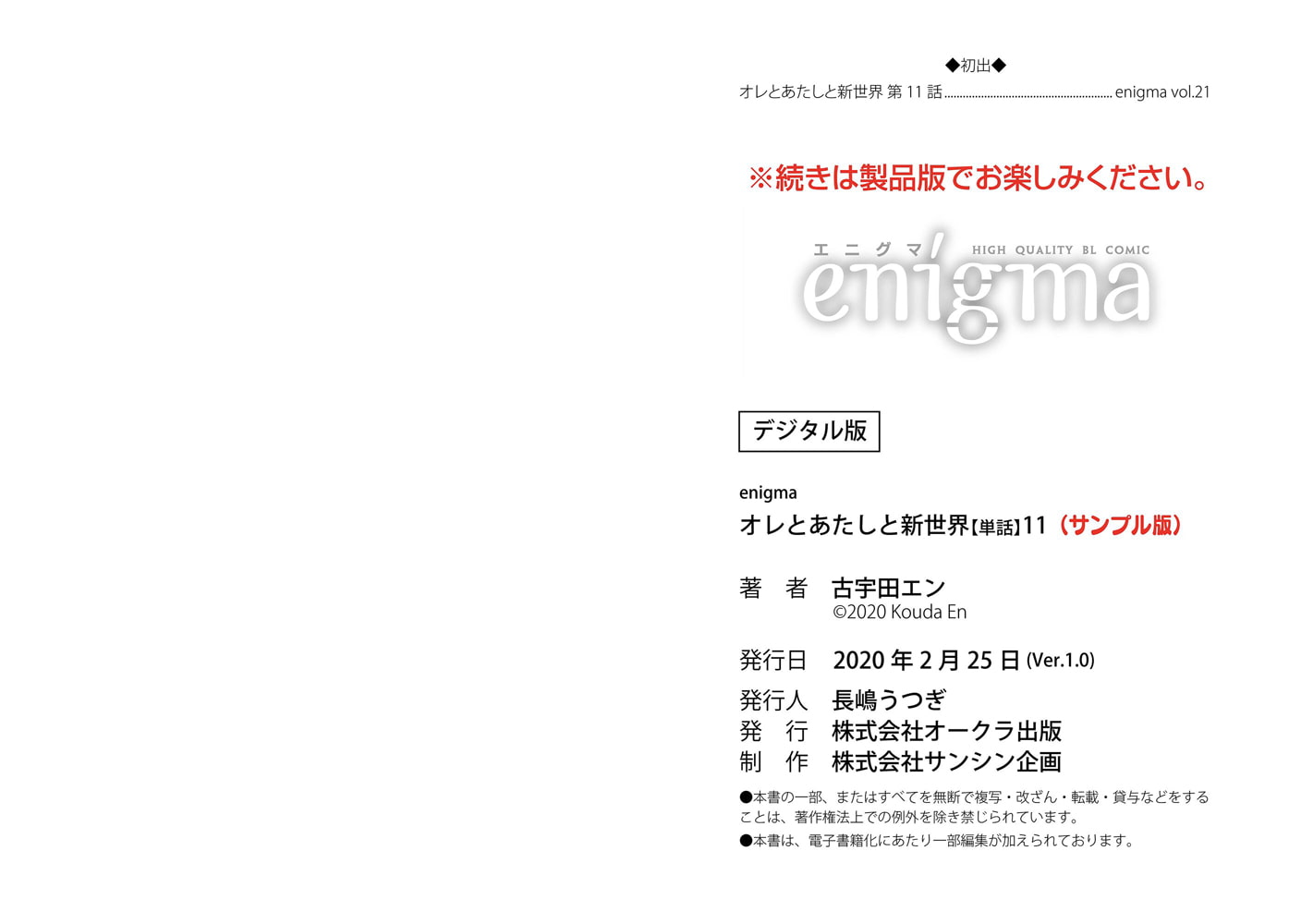 【本作はWEB雑誌「enigma」及び、enigmaコミックス「オレとあたしと新世界」に収録されています。重複購入にご注意ください。】