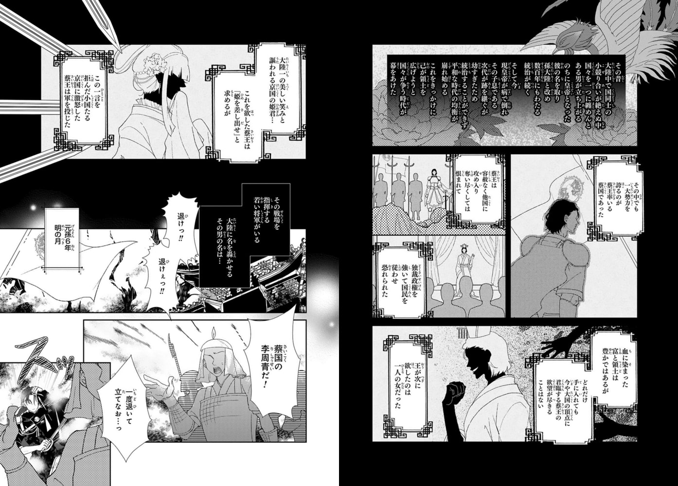 代々王に仕える一族の時期当主として、剣の腕もたつ若き将軍・李周青の隣には常に補佐官・高栄峰の姿がある。母の罪を背負い反逆者として軍の人間からも疎まれる栄峰だったが…周青からの信頼は厚く、また周りには秘密の恋人同士。この先も一緒のはずだった…王が新しく迎えた妃・明蘭が現れるまでは。全く笑わない妃が微笑むのは人が処刑されるとき。美しく微笑む彼女に魅了される王は、笑顔が見たいが為に小さな罪でも処刑し始めて…軍に敵意を持ち始める国民、疲弊する軍そして淡々と任務を遂行する周青の気持ちがわからなくなる栄峰…悩む栄峰の前に自分が「王の息子」だと知る人物が近づいてきて…若き将軍×反逆の子の中華ファンタジー