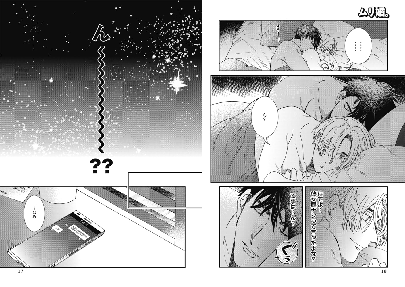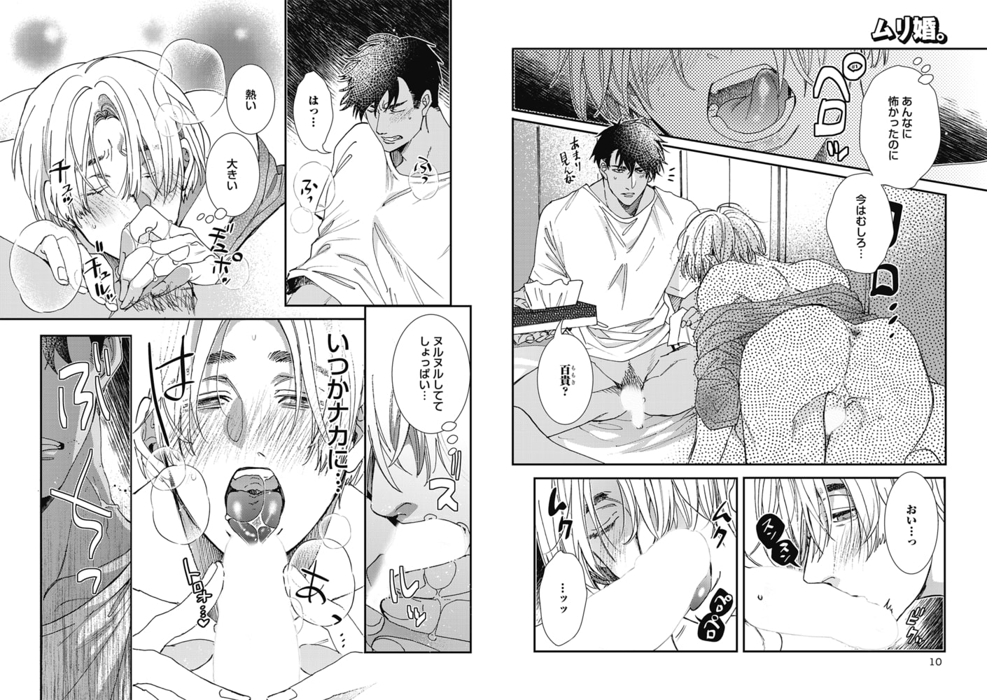 ●いつきまこと[ムリ婚。 第4話]千景の巨根を受け入れるために後ろを慣らす百貴は、すっかり千景のテクにメロメロに!!