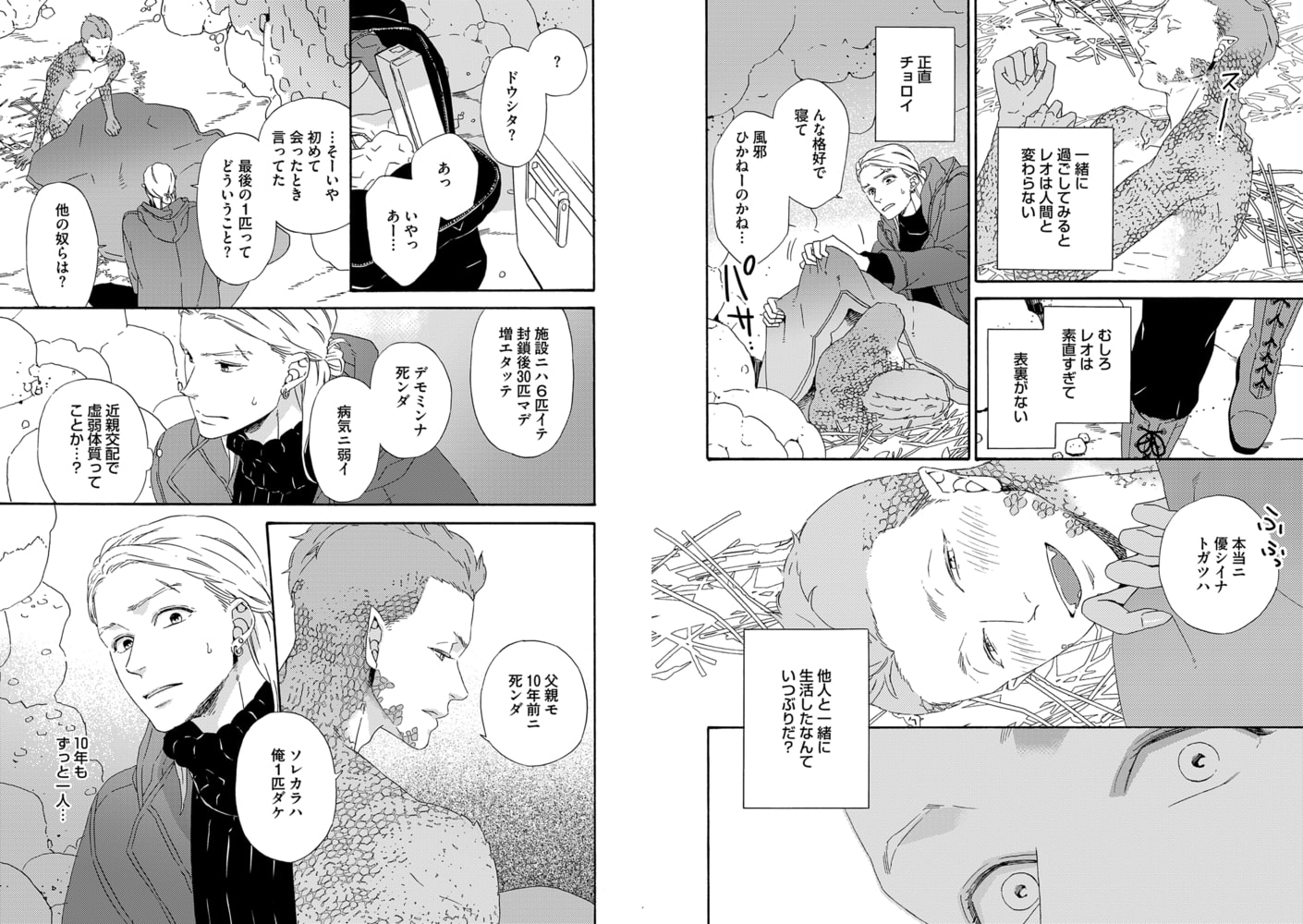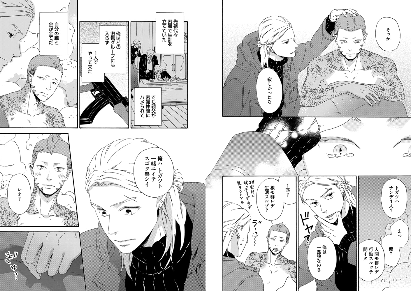恐竜、豹、淫魔、イルカ、鬼…などなど、今回も様々な人外を取り揃え、大人気増刷中のコミックス「月と狼」の番外編も掲載!
