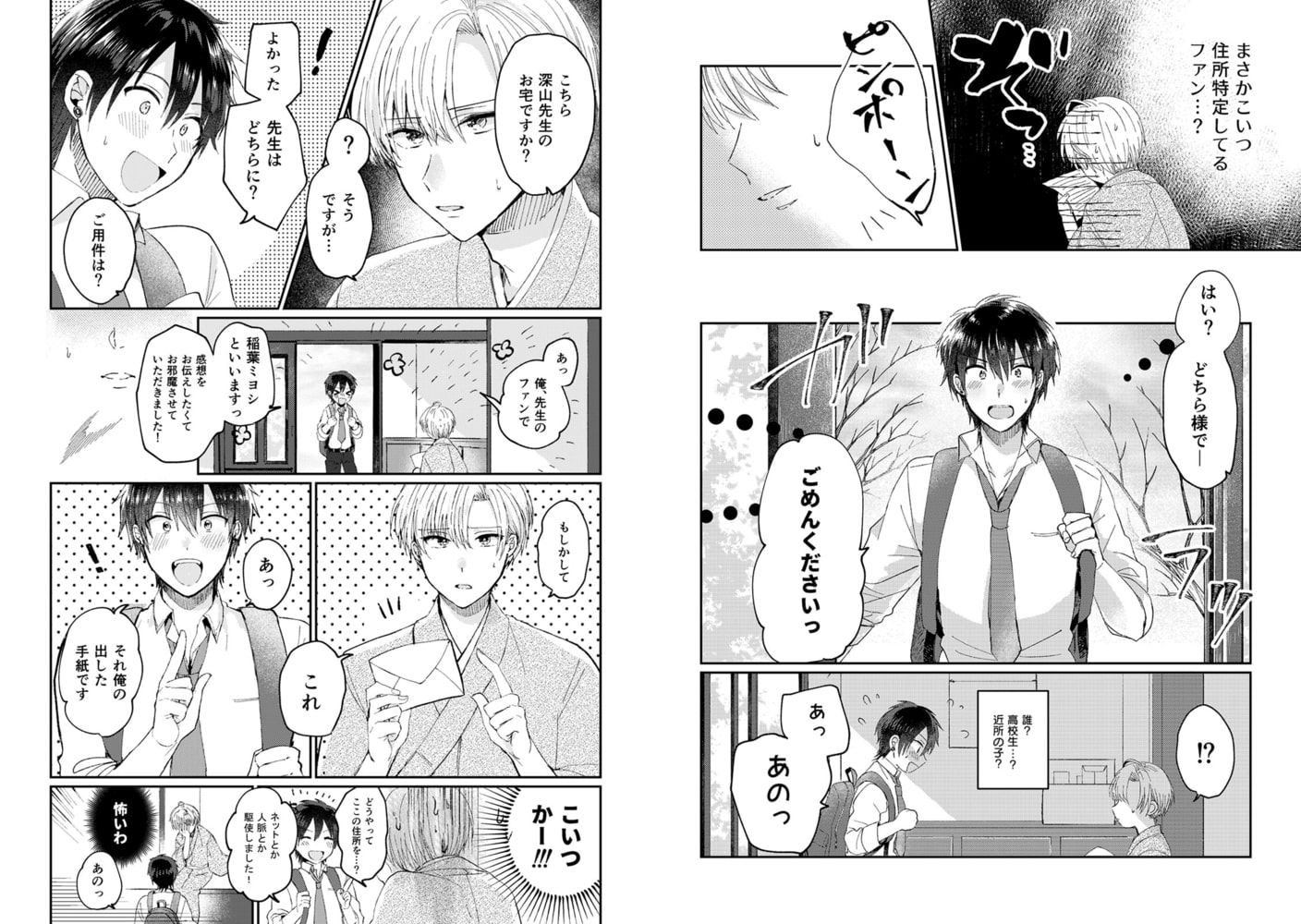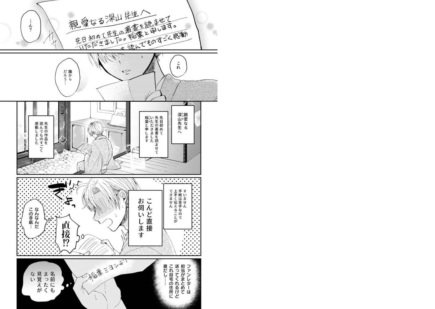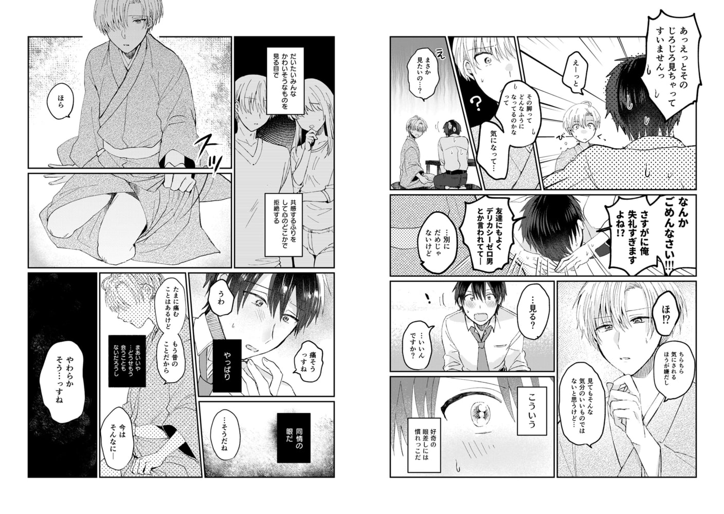 小説家の深山紫朗のもとに、ある日、ファンを名乗る若者・稲葉ミヨシが訪ねてくる。深山は幼少期に事故で両脚を失くしていたが、ミヨシはその脚を見るなり目が釘付けに。「中ってどうなってるんですか?」興味津々のミヨシに触られ、ぐいぐい迫られて戸惑う深山だったが、「柔らかくて気持ちいい」と予想外の反応に驚く。それからというものミヨシは毎日訪れるようになり、二人はじょじょに交流を深めるようになる。次第に深山はミヨシの訪問が楽しみになるが、一方ミヨシは自身の深山に対する気持ちの変化に気付き…。募った想いが抑えきれなくなってしまったミヨシは…!?