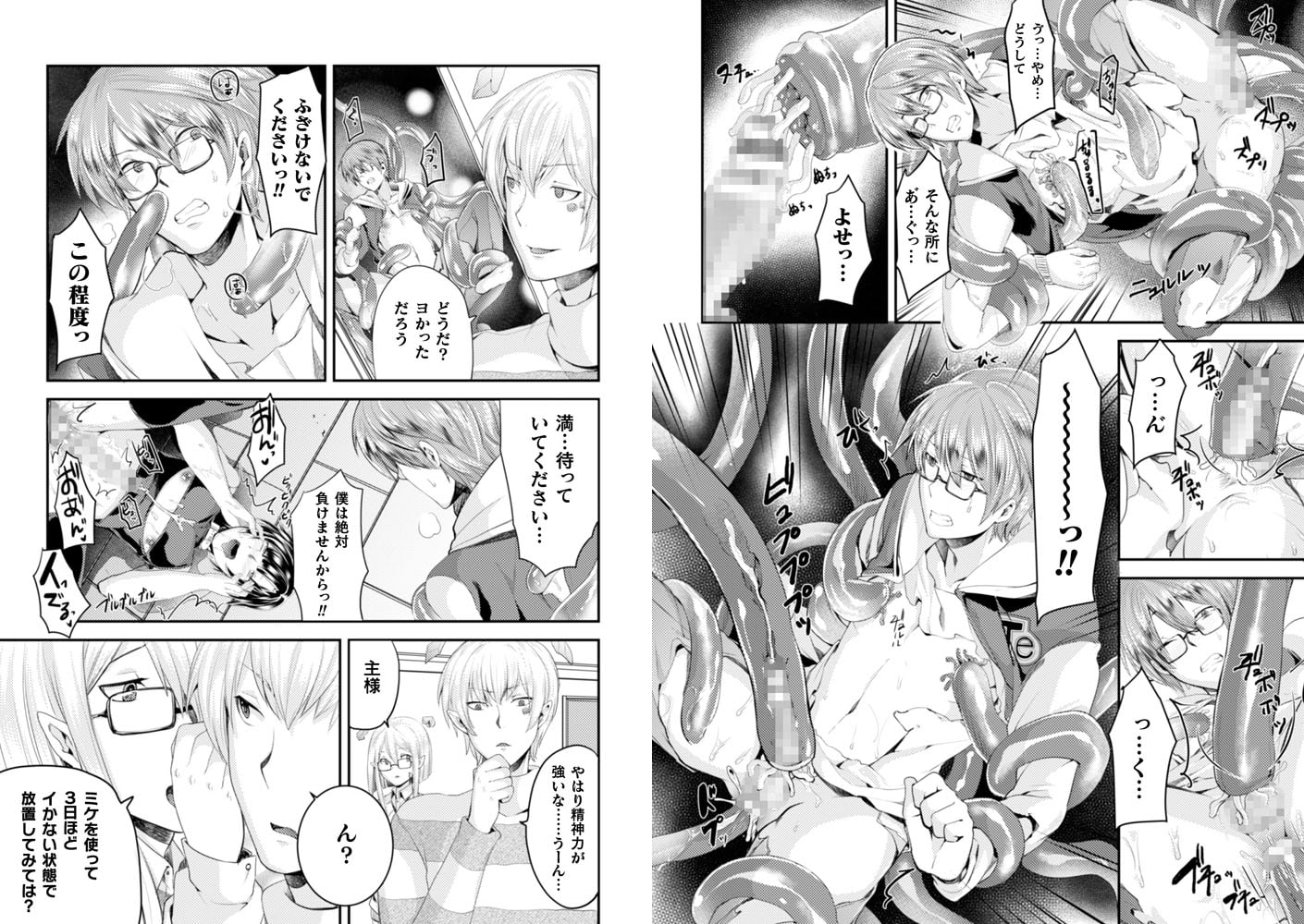 触手責めと射精管理という激しい調教を受けるも、