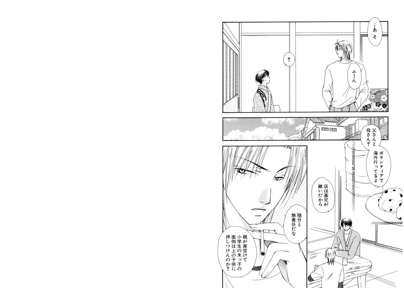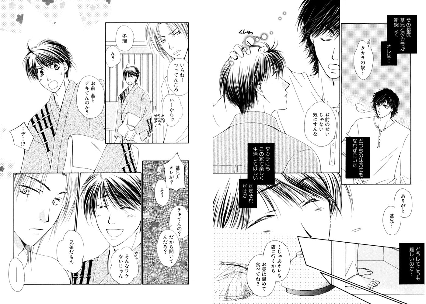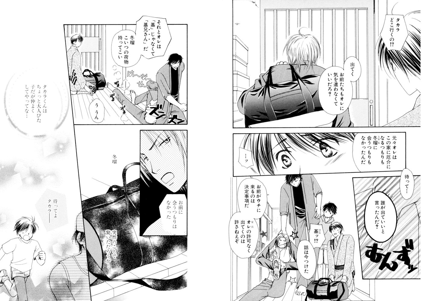 『お前、オレに構って欲しかったのか?』両親が海外に行ってしまい、桂木家は冬瑠と基兄と弟の二葉の3人だけで暮らしている。そこに突然、問題児(?)の従兄弟、タカラがやってきた!! 大騒ぎしながらもタカラを迎え入れた3人に、なぜかタカラはなじもうとせず、幼なじみの冬瑠は淋しくて堪らない。そのことを告げると、タカラは急に優しい顔を見せるが、その表情には何かたくらむような危険さがあって――!?