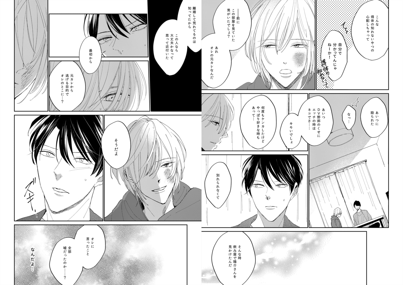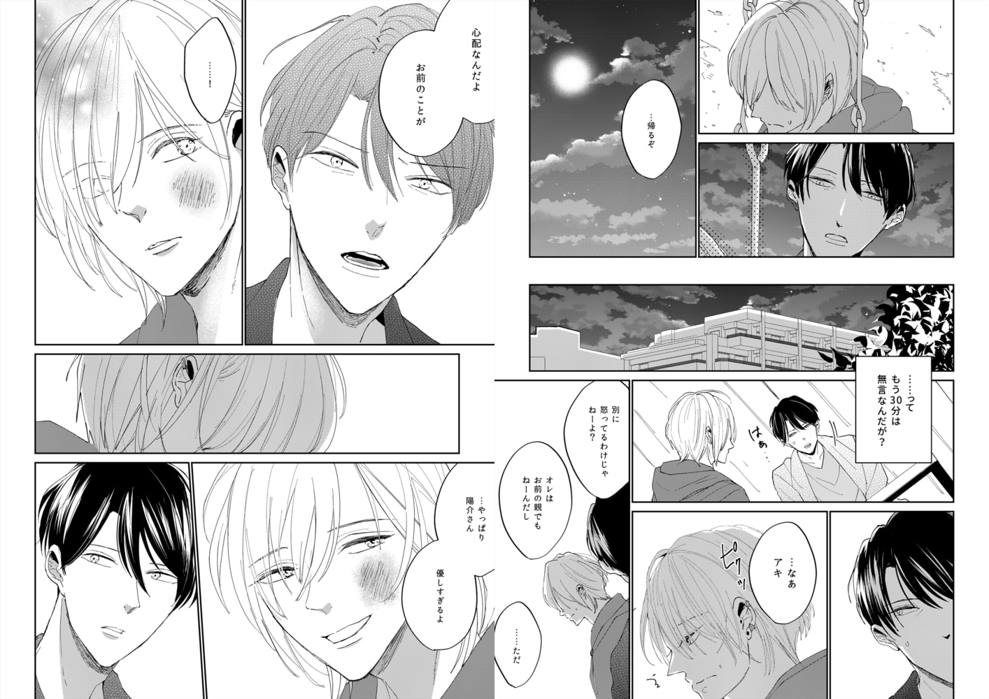 35歳の陽介は、離婚の傷を引きずるバツイチリーマン。ある夜、飲み過ぎてドロドロに泥酔、気が付くと自宅マンションで見知らぬ若い男に股間をしゃぶられていた!?公園で寝ていたところをここまで運んでくれたらしいが、アキと名乗るこの男はどうやらゲイでヒモらしい。陽介のことをずいぶん気に入ったようで、その日から勝手に居座るように。隙を見せれば「おじさん寂しいんでしょ、俺が慰めてあげる」なんて言いながら尻を狙ってきて…?男と寝るなんてあり得ねぇ!と拒否し続けていたけど、明るく優しいアキに次第に絆されていき…。でもだからって、後ろの貞操を失うとかハードルが高すぎる!!