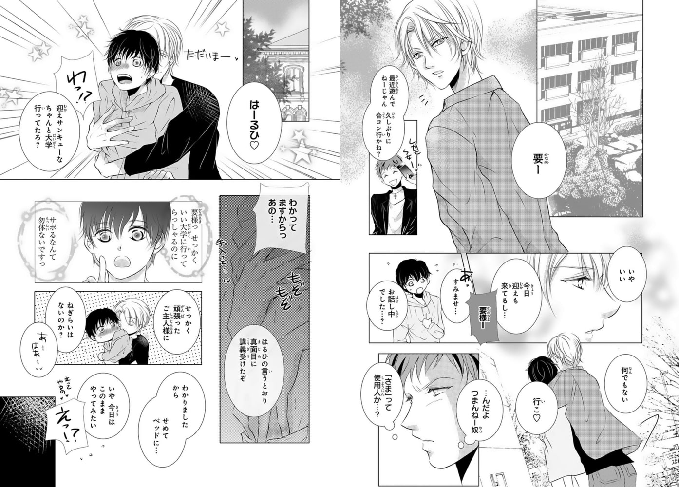 女遊びがひどかった『要』は、見かねた父親にオークションで歳の近い青年『はるひ』を買ってもらう。女の代わりに、はるひを抱いて遊ぼうとするがウブな反応にクルものがあり…。オ●ニーをさせたりフェラご奉仕をさせたり、ブジーで尿道を責めたりと行為は過激になっていく。さらに、「俺、上手いから」と初めてのナカを一気に突き上げ――。愛を知らない俺様傲慢なお坊ちゃま×家族のために身体を売った青年。最初は遊びのつもりだったのに……。体を重ね共に過ごすうちに、どんどんはるひ自身が欲しくなっていって――…。