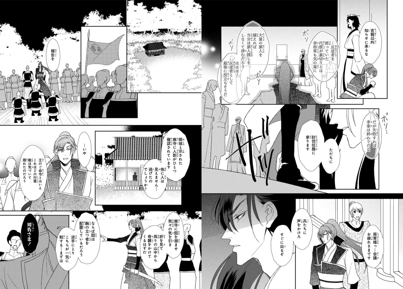 代々王に仕える一族の時期当主として、剣の腕もたつ若き将軍・李周青の隣には常に補佐官・高栄峰の姿がある。母の罪を背負い反逆者として軍の人間からも疎まれる栄峰だったが…周青からの信頼は厚く、また周りには秘密の恋人同士。この先も一緒のはずだった…王が新しく迎えた妃・明蘭が現れるまでは。全く笑わない妃が微笑むのは人が処刑されるとき。美しく微笑む彼女に魅了される王は、笑顔が見たいが為に小さな罪でも処刑し始めて…軍に敵意を持ち始める国民、疲弊する軍そして淡々と任務を遂行する周青の気持ちがわからなくなる栄峰…悩む栄峰の前に自分が「王の息子」だと知る人物が近づいてきて…若き将軍×反逆の子の中華ファンタジー