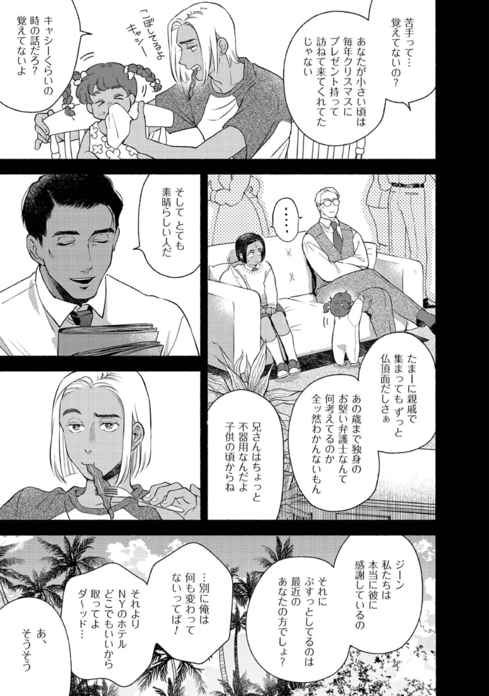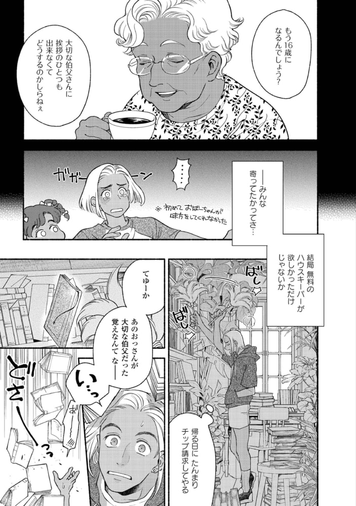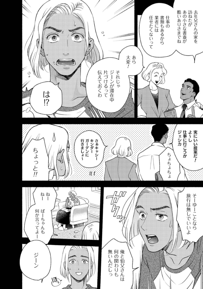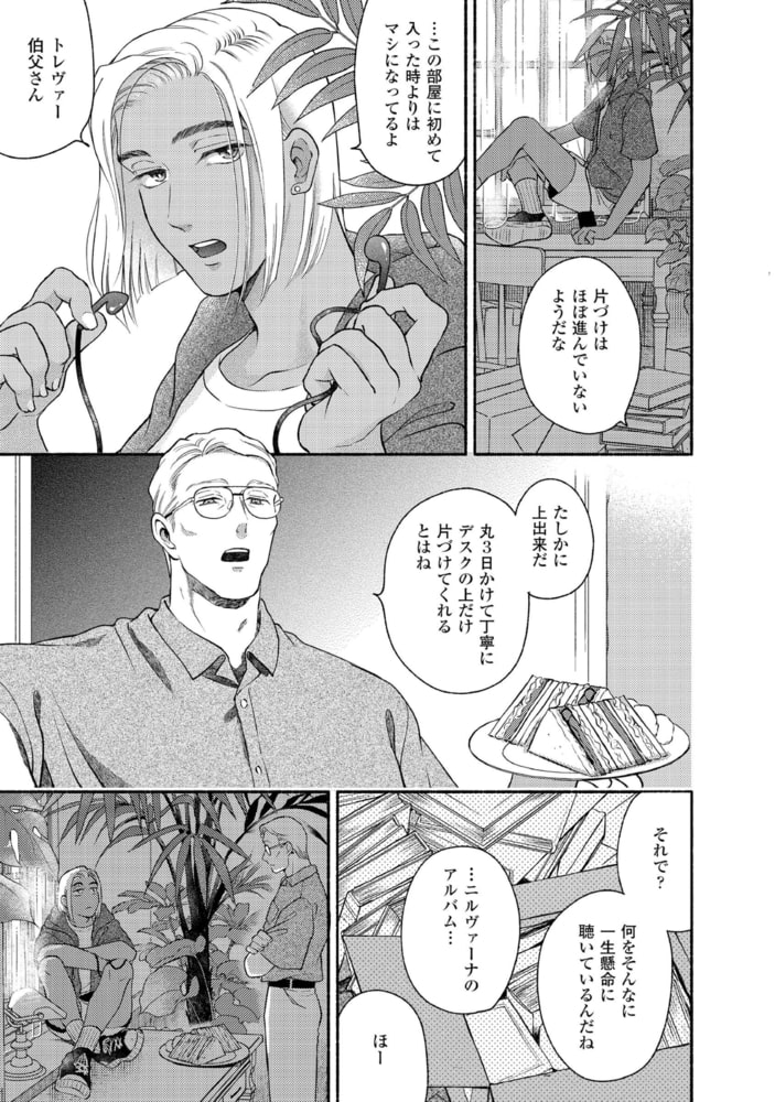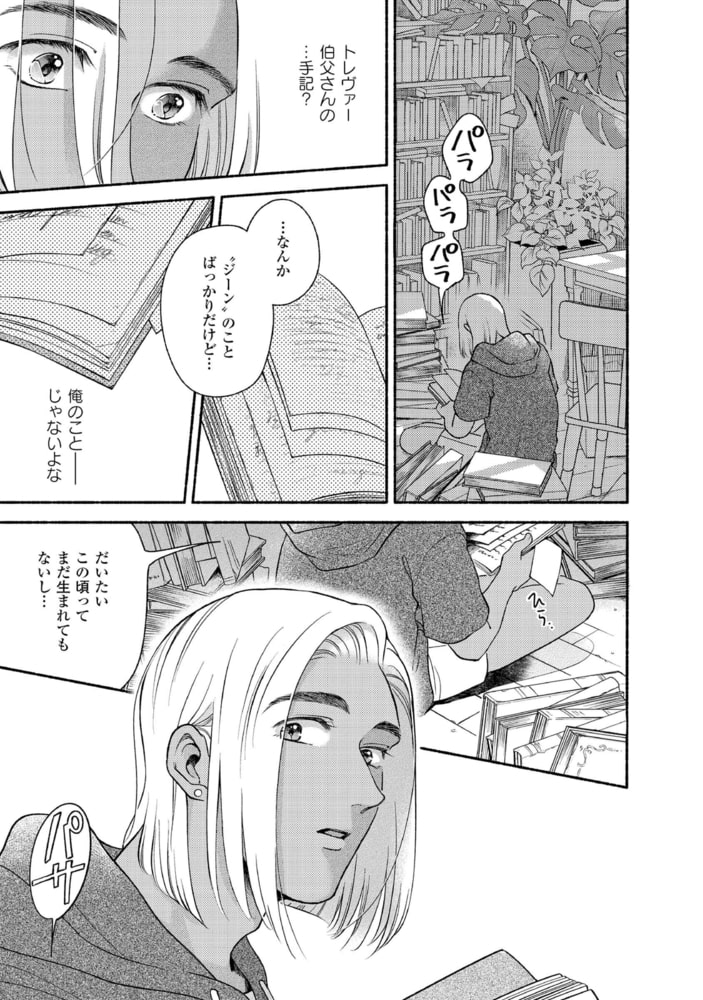 NYに住む伯父・トレヴァーの書斎で一冊の手記を見つけたジーン。そこには、自分ではない「ジーン」について綴られていた。……1973年。弁護士のトレヴァーは重要な書類を紛失する。雪が降りしきる中、それを届けてくれたのは清掃員していたジーンだった。ボイラー室で暮らしているという、見るからにみすぼらしい彼を放っておけず、トレヴァーはお礼も兼ねてハウスキーパーをしないかと持ちかける。まるで中世からやってきたような世慣れなさに反し、教養を感じさせる美しい元アーミッシュの青年ジーンとの同居生活は、ゲイであるトレヴァーに羨望と穏やかな幸せをもたらすが……。大ヒット作『ラムスプリンガの情景』へとつながる、もう一つの愛の物語。