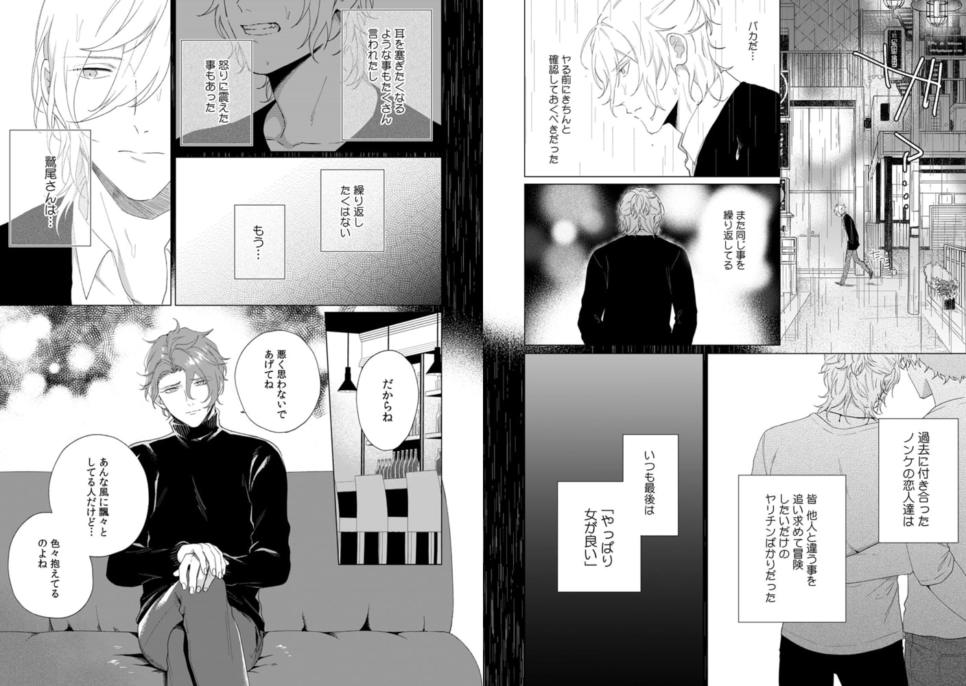 淫らに絡まる視線に犯されて――。花屋に勤める春野の元に、足く通ってきては熱烈な視線を寄こしてくる、客で彫り師の鷲尾。ゲイで遊び人の春野は、そんな鷲尾をつまみ食いしようとホテルに誘う。いつも通り主導権を握り、絶妙なテクで鷲尾を翻弄していく春野だったけど、気がつけばなぜか形勢逆転!