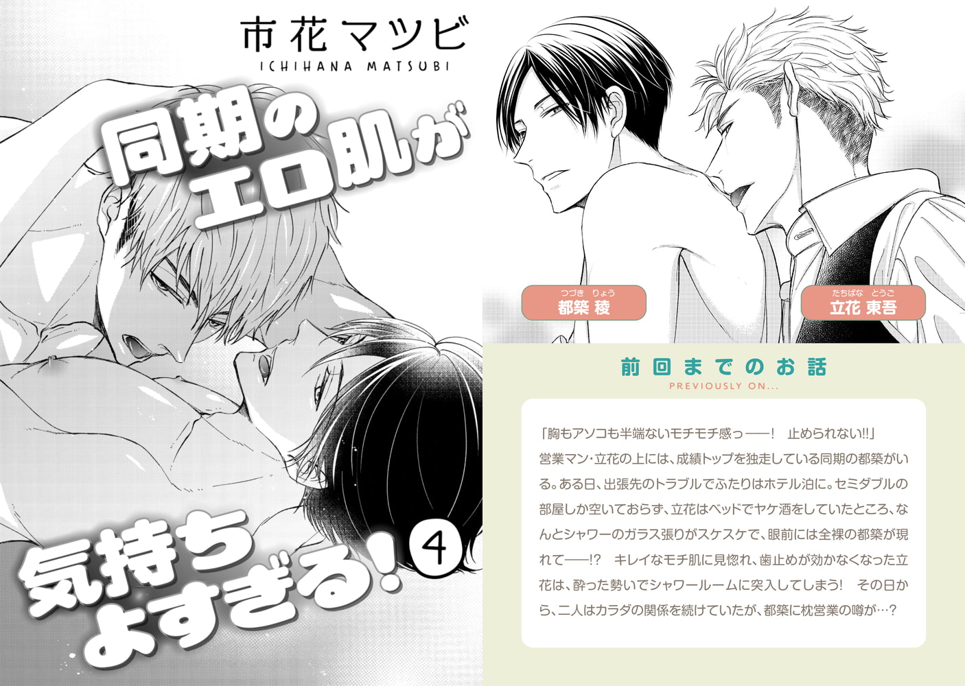 市花マツビ「同期のエロ肌が気持ちよすぎる!4」営業マン・立花と成績トップを独走している同期の都築。ある日、出張先のホテルで都築のキレイなモチ肌に見惚れ、歯止めが効かなくなった立花はカラダの関係ができ、仕事もセックスも絶好調で…!?
