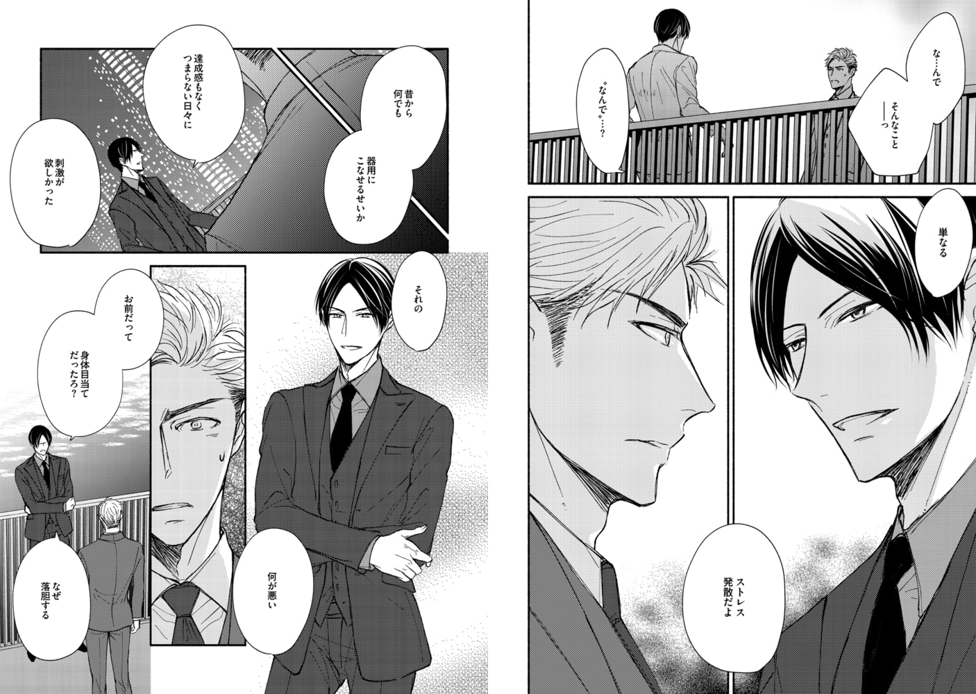 高岡七六「泣かないで好きな人2」『抱かれた感覚、忘れたくないな…』――失恋で泣いていた男・兼倉の前に、青年・琥が現れる。どん底に落ち込んでいた兼倉をセックスで癒し「愛してる」と告げる琥。実は兼倉のことをずっと想っていて――。