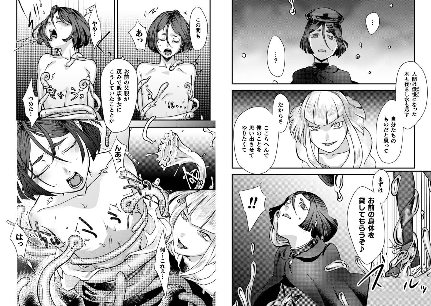 子どもは村で祀られている水神だが、感謝を忘れ傲慢になりつつある村へ復讐のために惣之助の身体を乗っ取りペニスをいじり大人の性器に無理やり改造される。