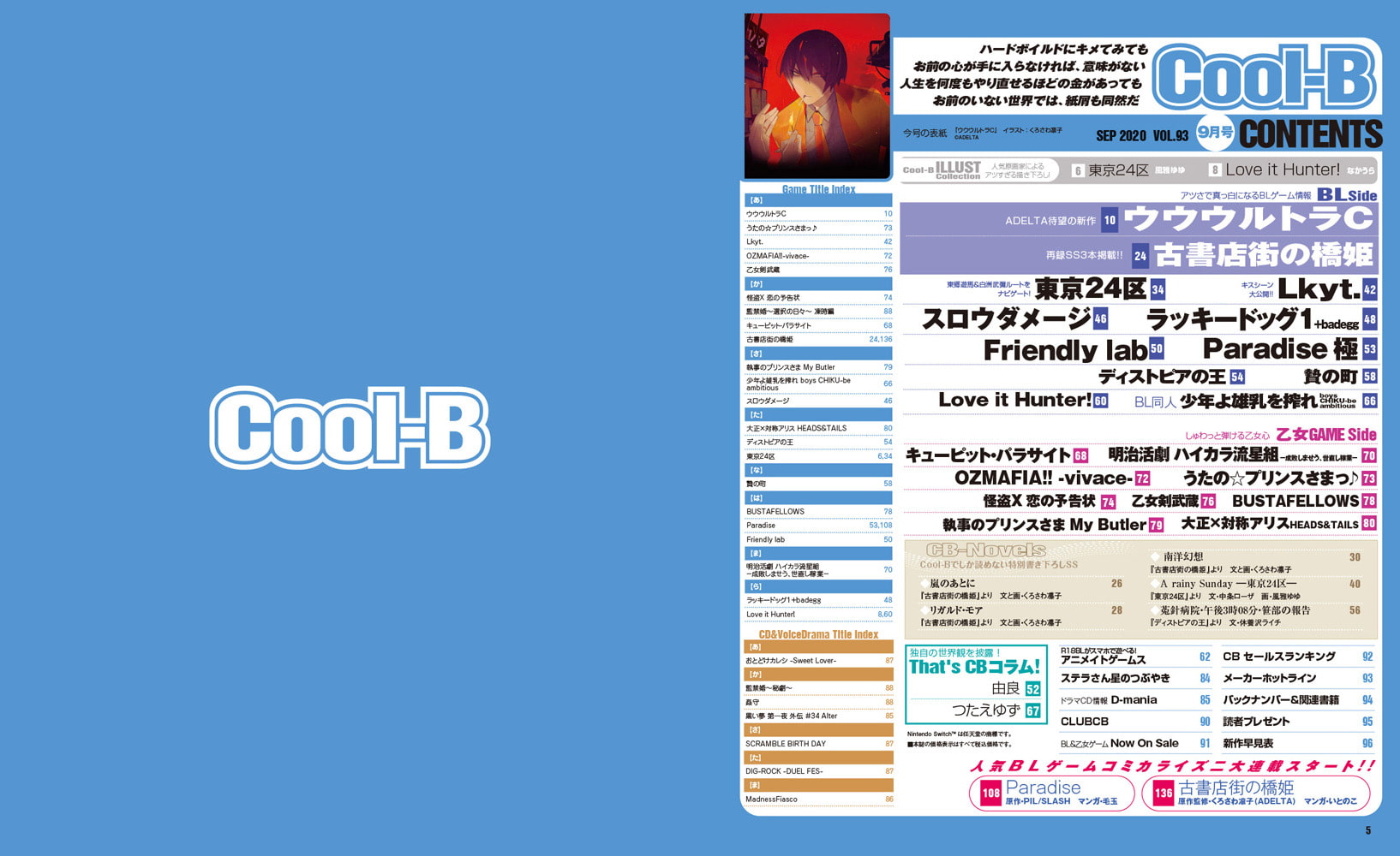 人気BLゲーム『古書店街の橋姫』『Paradise』コミカライズ連載スタート!!ADELTA待望の新作『ウウウルトラC』表紙&巻頭特集!第3部主人公に関する情報も!『古書店街の橋姫』読者参加型の新企画。人気急上昇中『東京24区』攻略記事掲載、グラビア&書き下ろしSSも!