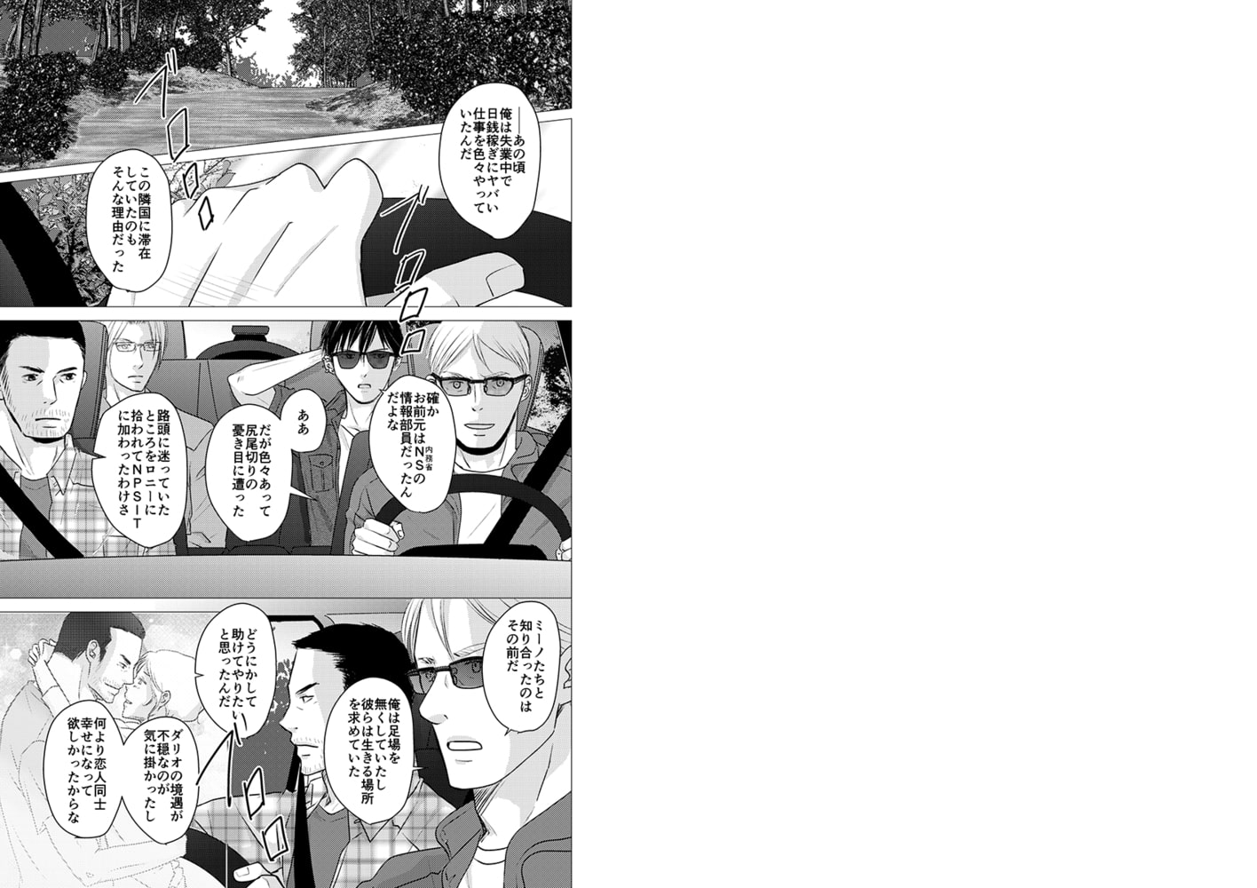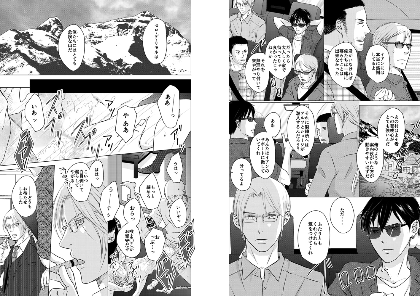 コンビを組んで犯罪組織と戦うショージとアルフ…ショージは【オメガ】ながらも、努力の末に特殊捜査官に所属するが、突然体を襲う「発情」は抑制剤を飲んでいても止める事が出来なかった。ショージの後輩にあたるアルフは彼の発情を抑えることの出来る唯一の【アルファ】だったが、その性質上、一度交尾を始めると、お互いが達するまで止める事は出来ない…お互いを求め合う姿はまるで獣――後輩と先輩、オメガとアルファ…ばら撒かれた糸の様な複雑な感情は、組織と言う閉鎖された空間の中でどの様に絡み合っていくのか…