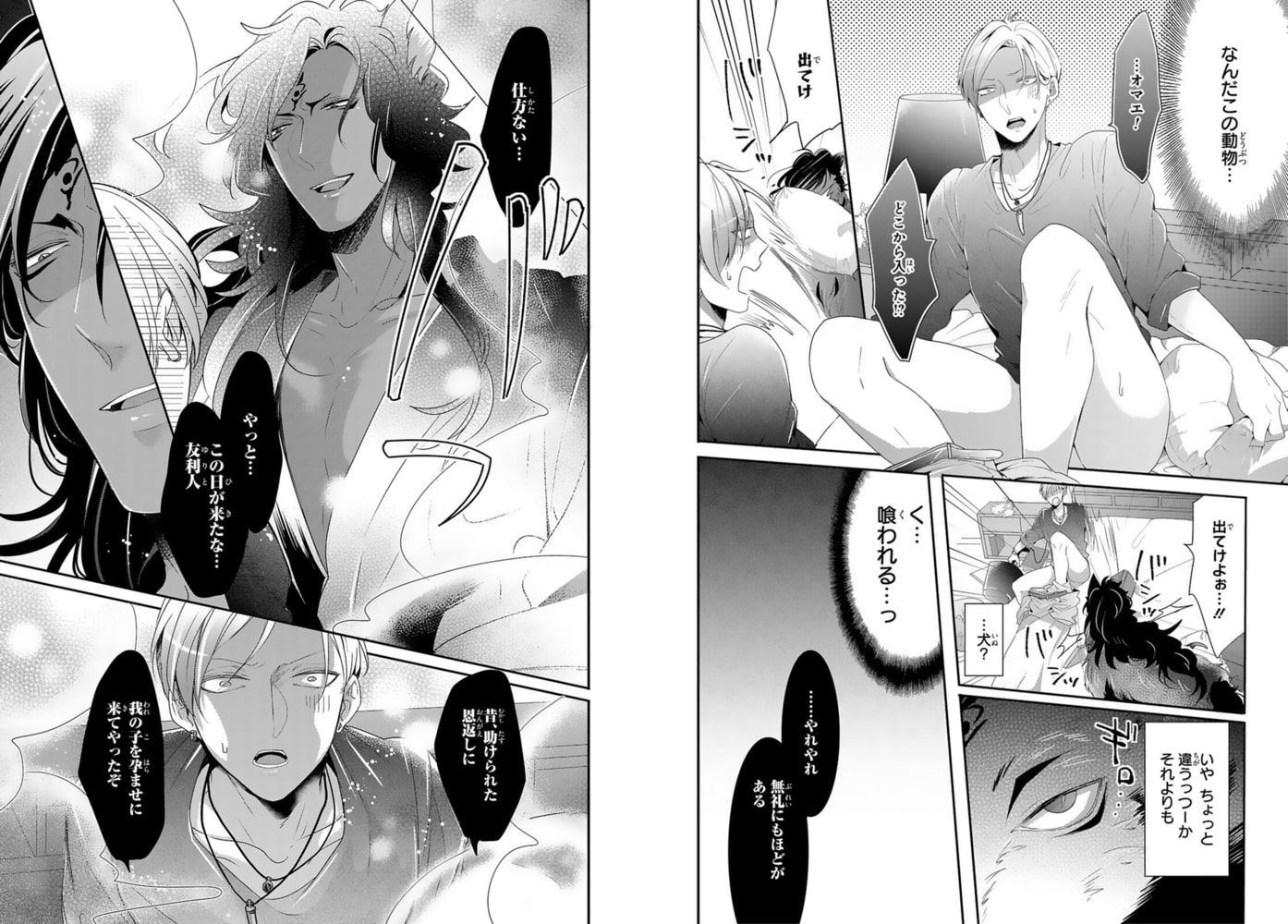 「我の子を産むことが失禁するほど嬉しいか」ヤリチンの俺が、偉そうなケモ耳男に上も下も犯されビショビショに…!?獣医学部に通う遊び人の友利人は、人間や動物を問わず『雄に悉く避けられ嫌われる』といった特異体質に悩まされていた。一方、女とは奔放な性生活を送っていたが、腹の熱くなるような疼きは女では解消できずア●ニーで何とかやり過ごしていた。そんなある夜、ア●ニーの真っ最中に、突然まっ黒で大きな獣が現れアソコを舐めてきて!?さらに「助けられた恩返しに我の子を孕ませにきてやったぞ」と人型になった神を名乗るケモ耳男にあっという間に押し倒されると、自分じゃ届かなかった奥を擦られ――…気持ち良すぎて……!!!!