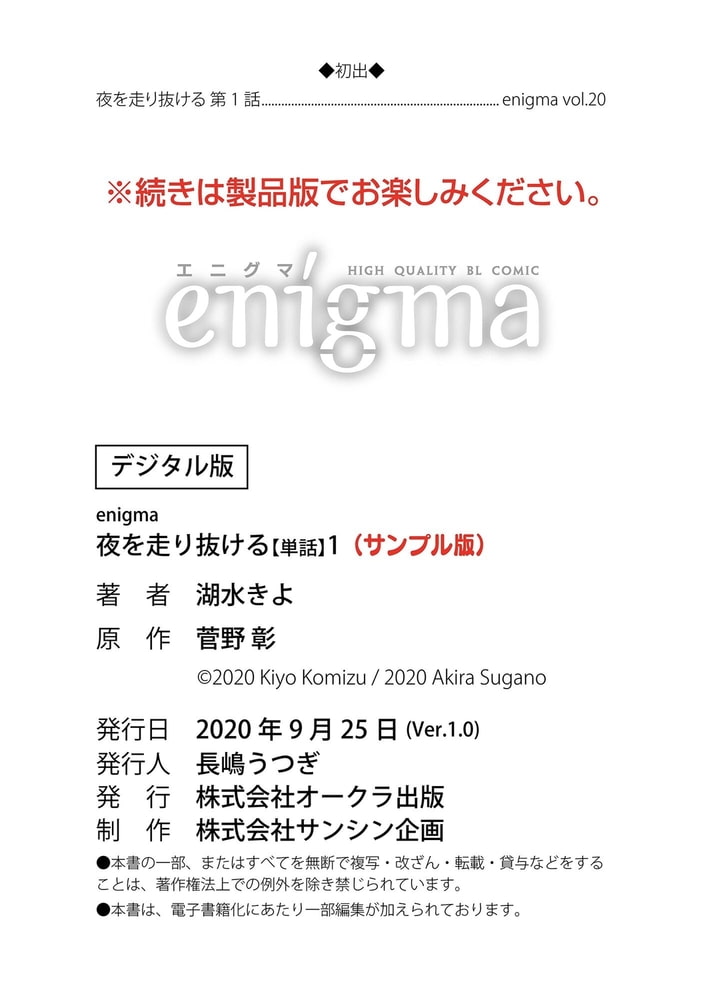 【本作はWEB雑誌「enigma」及び、enigmaコミックス「夜を走り抜ける」に収録されています。重複購入にご注意ください。】