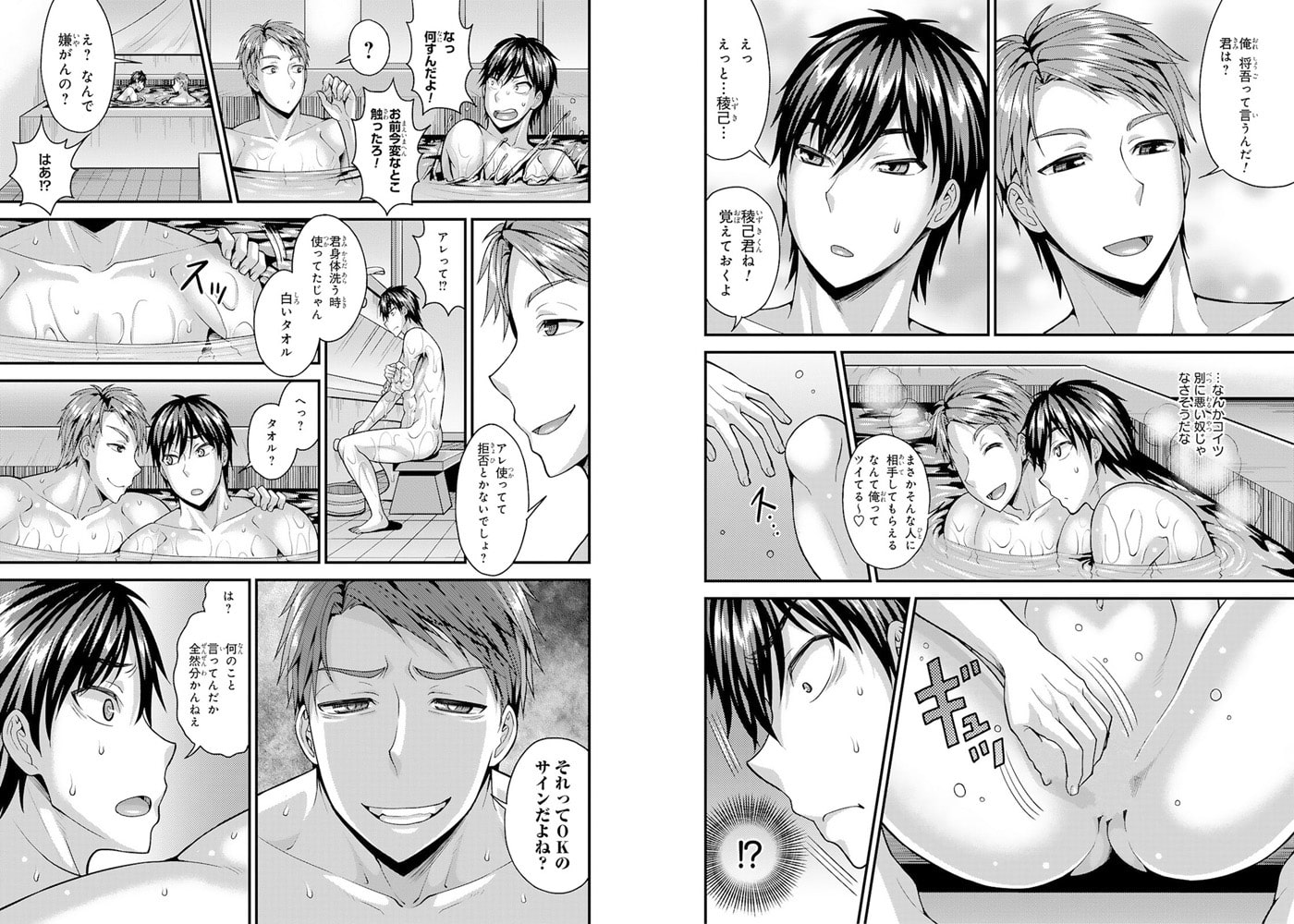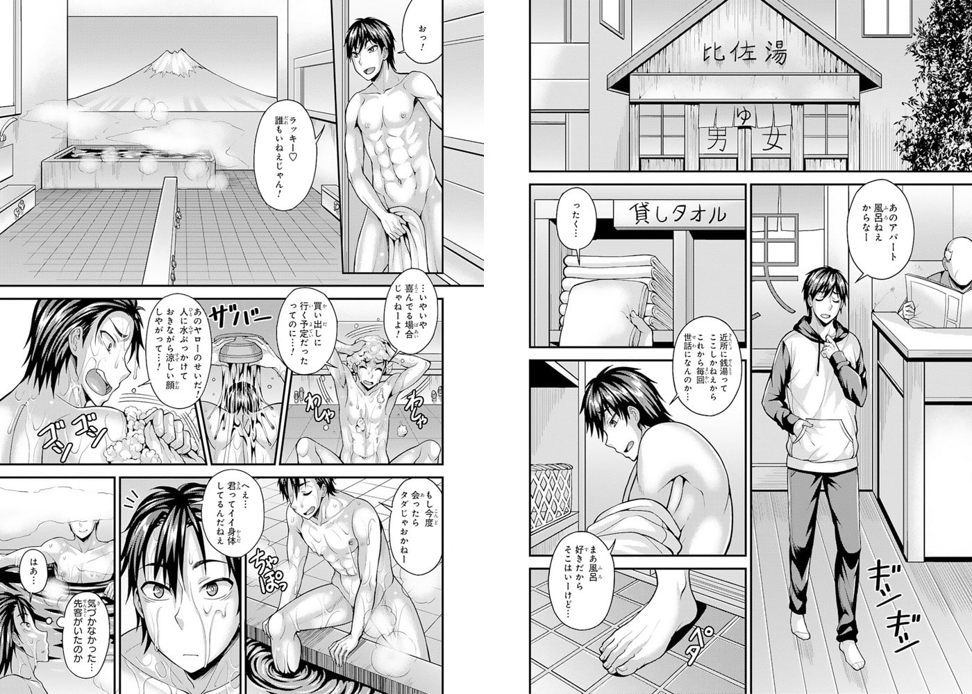 「白いタオル、それってOKのサインだよね?」近所唯一の銭湯はハッテン場!?ルールを知らずに入ってしまった上京ノンケ、貞操の危機――!アクション俳優を目指し、意気揚々と上京してきた湯沢稜己。上京初日の買い物にいく際中、自転車に水を掛けられてずぶ濡れになってしまう。家のボロアパートには風呂が無いため仕方なく近所の銭湯に向かうと、さっき水を掛けてきた男・野上将吾と再会して!?怒ってはいたものの自慢の筋肉を褒められ、意外といい奴…?と気を許した瞬間、アソコを掴まれ扱かれてしまう!突然のことに抵抗するも、将吾は全然止めてくれないどころか尻を掴まれ舌でナカを解され…嫌なのに下半身は反応してしまい!?