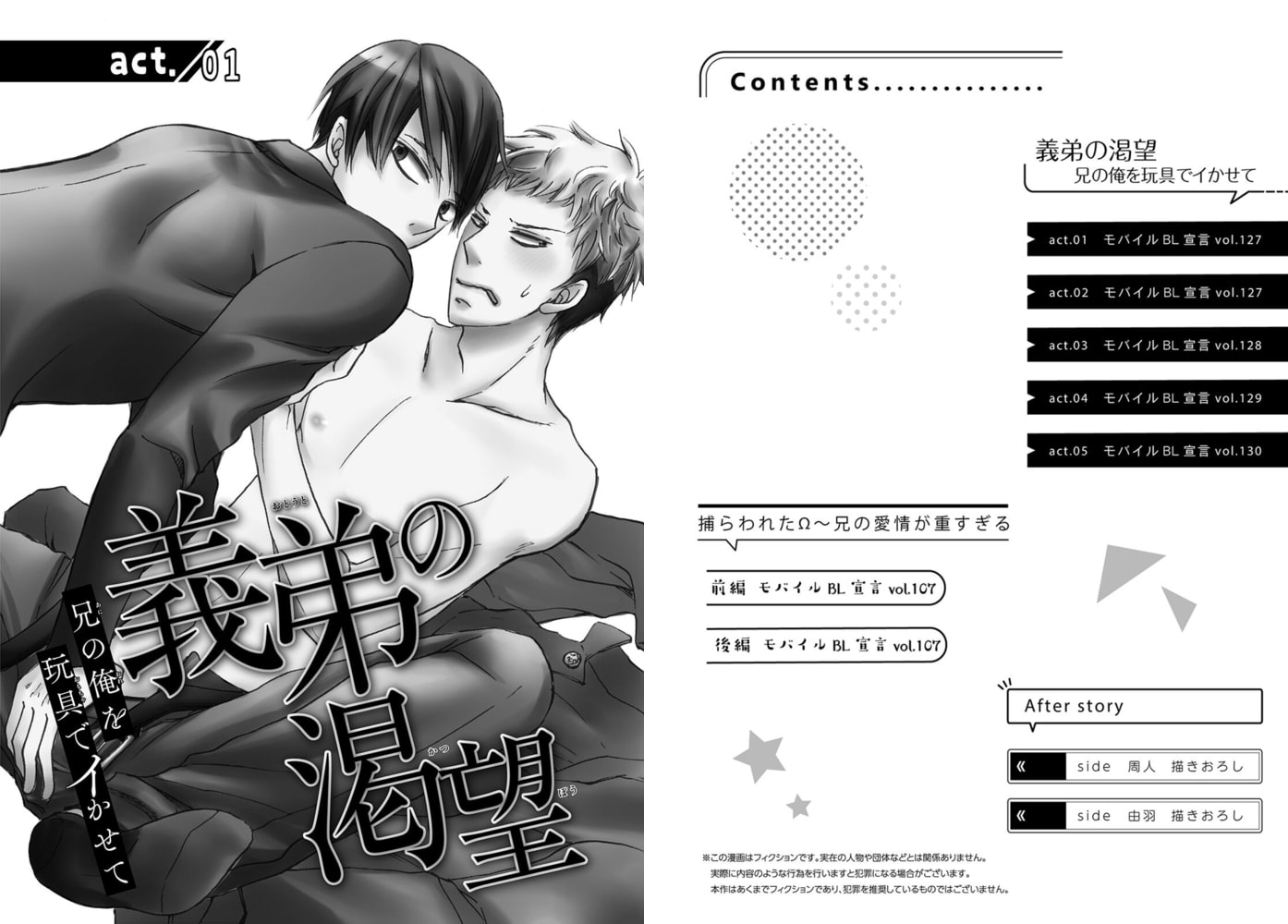 【こちらは話売り『義弟の渇望~兄の俺を玩具でイかせてしおを●かせて~』全5話、『捕らわれたΩ~兄の愛情が重すぎる』全2話を収録した単行本の電子版になります。】血は繋がっていないけど可愛い弟だと思っていたのに――。喧嘩はするけど家族と仲間思いなヤンキー周人は、ライバルの男相手に恋心を抱いていたが失恋してしまった。家で落ち込んでいるところを性格が正反対の義弟の天馬に見られ!?「男がいけるなら俺でも大丈夫だよね?」と無理やり組み敷かれ…自分よりか弱いと思っていたのに抵抗できない!?何度もイかされ義弟に調教開発され堕ちていく――…