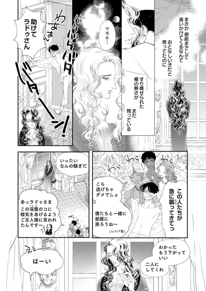 「今からするのは「愛する人とのセックス」ではないが、利己的な無理強いでもない――君が生きるのに不可欠なものなんだ――」美しい吸血鬼は、清純な淫魔の上に跨り、その硬い肉棒を一気に己の腹の奥に納めて――。 菱田マモルはただ真っ当な"人間"として生きていたいだけだった。事実、彼はごく普通の大学生だった……彼が人ならざるモノ――淫魔と人間の合の子である事実を除いては。淫魔のフェロモンが制御できずに垂れ流し状態のマモルは、そのフェロモンによって惑わされたトラックにアパートを破壊された上に、今まで精気を摂取したことがないために体調不良でフラフラだった。そんな彼を助けたのは、同じく人ならざるモノ――吸血鬼のラドゥだった。「わたしは君に死なれては困るんだ」ラドゥはそう告げると、淫魔として精気を摂取する方法を知らないマモルにセックスを教え、精気を与える。そして、その引き換えに彼を"使い魔"にする。その使い魔としての役割とは……日本の誇る新たな芸術――"漫画"の祭典、コ●ケに行って漫画を買うこと――!? 真っ当に生きたい初心な淫魔×芸術をこよなく愛する魅惑の吸血鬼の絢爛耽美で不器用な関係性の行方は――