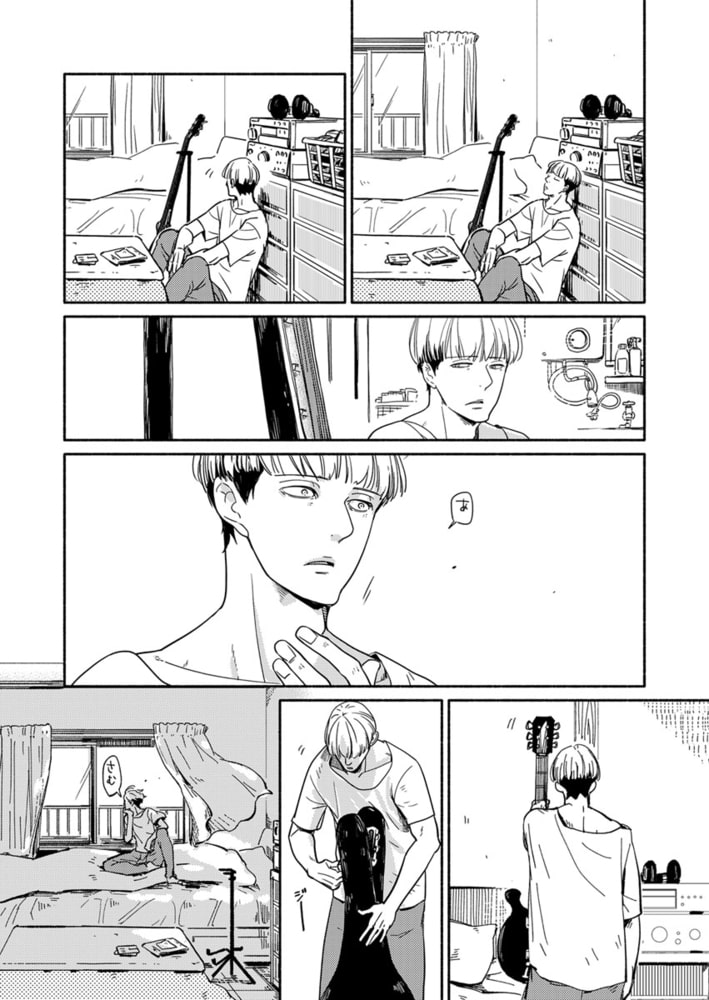 「オレのギターが好きなら、オレのことも好きになってもいいよ」新島洋次はドラマーとしての道を諦め、就職をし平凡な生活を送っていた。いい職場に恵まれて何不自由なく生活してきたが、音楽への思いは募るばかり――…。ある日、住宅街に爆音のギターが鳴り響く。強くて悲しい音に導かれると、そこには大家さんに怒鳴られる飯島杏慈の姿があった。アパートを追い出された杏慈を、しばらく居候させるはめになった洋次。叩き出してやろうか…でも、あのギターをもう一度聴きたい――!!杏慈のギターは洋次の心と身体を激しく揺さぶり刺激する…ギターだけで、こんな…イクなんて。聴き惚れる洋次に、杏慈から突然のキス…!!ファーストキスだったのに!!しかも男同士で!?予測不能な杏慈の行動、果たして本当に好きになってもいいのだろうか…?