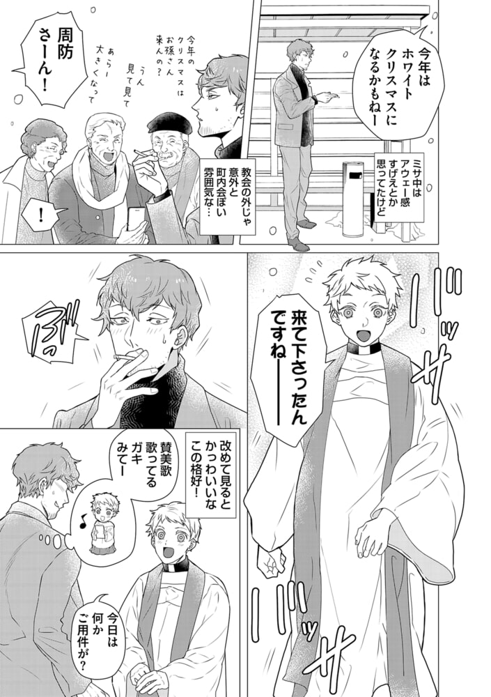 仕方なく神父と一緒に組長に詫びを入れに行くことになる。