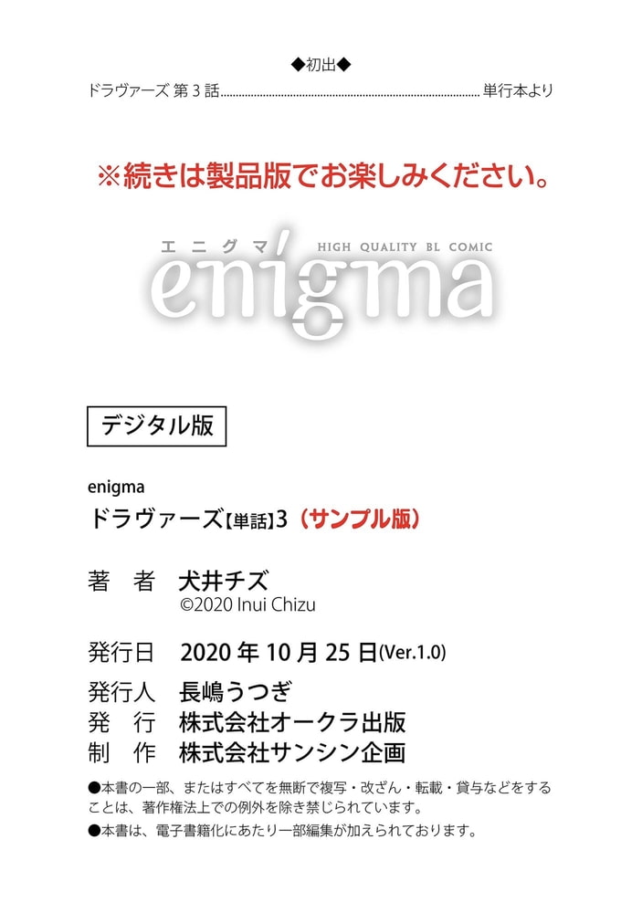 【本作はWEB雑誌「enigma」及び、enigmaコミックス「ドラヴァーズ」に収録されています。重複購入にご注意ください。】