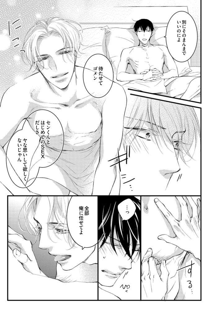 全部俺に任せて。 「気持ちいいセックス」教えてあげる──。 運命の恋に憧れている理央は、ある夜、エロくて謎の多い男・センと出会う。 「気持ちいいセックス」を知らないセンに快感を教えて、トロトロにとろけるような熱い一夜を過ごした二人。 理央はすっかり恋人同士になった気分だったけれど、センは一度抱かれた男とは二度と会わないと決めていた──。 そして、目の前から消えてしまうセン。 この運命の出会いを逃したくない理央は必死に探し出し、頑ななセンの心とカラダを、ありったけの情熱で愛して解すと誓う……! 「セン、これがセックスだよ」──── 御曹司で王子様のような理央と、田舎から出てきたセンの秘め事とは?トロあまに溺れて、溺愛されるその先には……。 各話たっぷりラブエロ&ハッピーエンド保証★ 電子配信限定・描き下ろしマンガ付き! ・収録内容 「溺愛男子に甘やかされてます」全5話