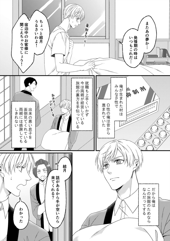 オメガの結月は、両親の頼みで政略結婚することになる。相手は幼い頃に自分をイジメまくっていた性悪アルファの東雲。10年以上経った今では、紳士で優しそうなイケメンに成長していたけど、あの頃の嫌な思い出が忘れられず絶対ムリ!と断固拒否。だけどお見合いの最中に発情し、フェロモンにあてられた東雲に組み敷かれてしまう。大嫌いな相手なのに、やたらと愛おしそうに求められたら身体が勝手に反応して…。前も後ろもトロトロに蕩け、自ら奥まで受け入れてしまい、激しく突かれながら首筋を噛まれてしまった…?「お前を一生放さない」天敵とツガイになるなんて、こんなサイアクな結婚あり得ない!!
