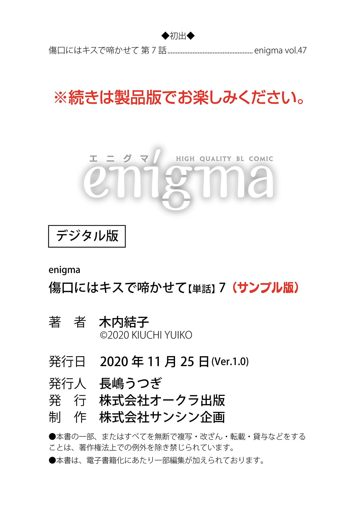 【本作はWEB雑誌「アクアhide」「enigma」及び、enigmaコミックス「傷口にはキスで啼かせて」に収録されています。重複購入にご注意ください。】