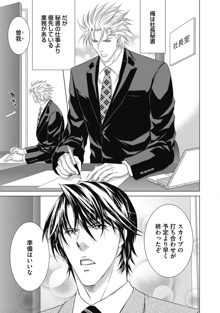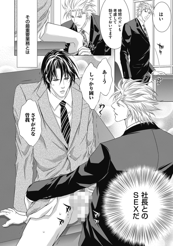 曽我はすぐに頭角をあらわし、あの手この手を使い社長を抱くがどこか淋しげな社長に身体だけではなく、心も惹かれていく…!