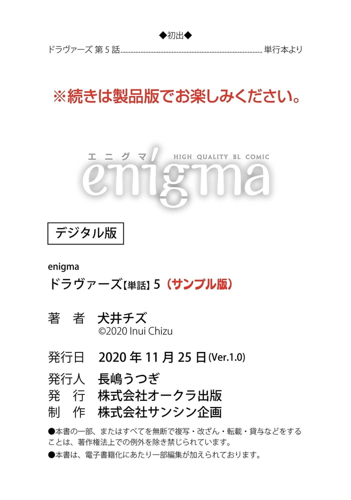【本作はWEB雑誌「enigma」及び、enigmaコミックス「ドラヴァーズ」に収録されています。重複購入にご注意ください。】