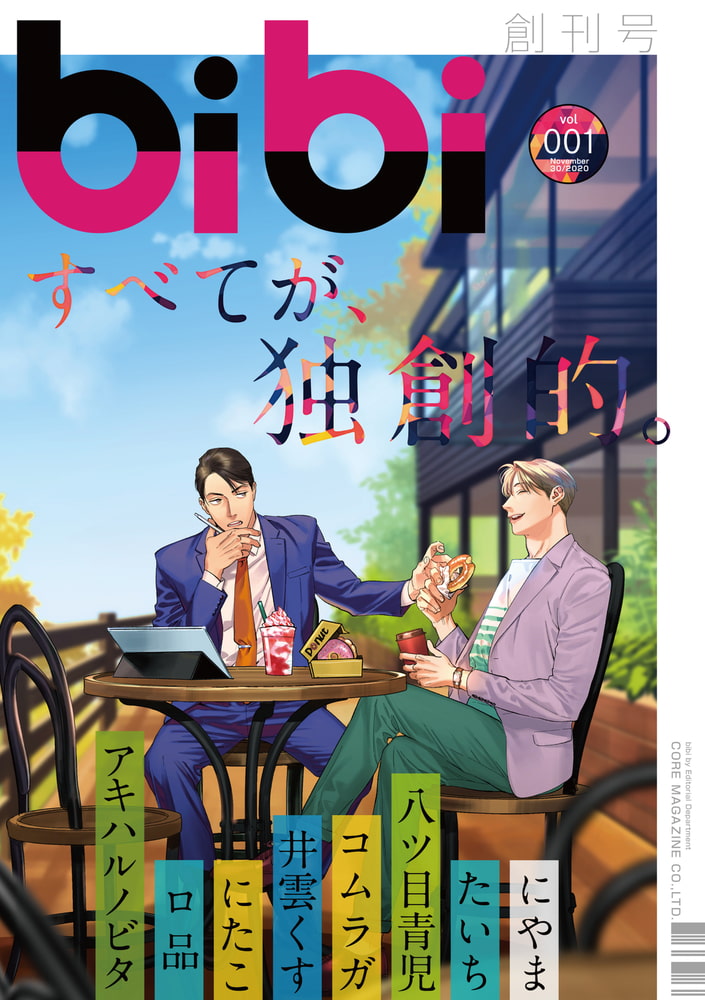 すべてが、独創的。好きな「モノ」は自分で決める 電子BLアンソロジー【COVER ILLUST】★にやま【ORIGINAL COMIC LINEUP】★井雲くす「flounders」アウトドアショップ店員・樹(いつき)の口車に乗せられた大田(おおだ)は二人きりでキャンプに行くことに!渋々だったはずが、その予定は次第に楽しみなものになってきて……?★にたこ「オメルタ」変死体の調査をしに来た捜査官アロンツォ。難航する捜査の合い間に街で見かけたドストライクな美青年と一夜だけのつもりで寝たら、翌日ひと晩の関係なんて嫌だとごねられはじめてしまい――?!★たいち「コンプレックス・ハーモニー」長続きするような恋愛ができないイケメン美術教師・玄一郎(げんいちろう)。新しく受け持つクラスの生徒・とうまに頼みこまれ、絵のモデルを引き受けることになったのだが…?★コムラガ「パストラル・メモリー」恋人・テオとののどかな田舎暮らしも8年目に突入して幸せいっぱいのハル。よく晴れたある日、水浴びをしようと脱ぎ始めたテオの姿に無性にムラっとしてきてしまい……。★アキハルノビタ「小田刈先生の抱きまくら君。」昼は目立たない学生、夜になればセックス三昧の三月(さんがつ)。いつものようにセフレの家で目覚めると、なぜか憧れの先生が目の前でうたた寝をしていて――?!★ロ品「ヒモ、拾いました。」容姿端麗かつ成績優秀。完璧な男として順風満帆そのものな人生を歩む藍咲(あいざき)。そんな彼の人生計画は行き倒れていた男・アキラを拾って大きく狂い始めようとしていた!★八ツ目青児「ライン」露店で働く好青年・ミネイ。毎朝リンゴを買いに来てくれる友達・カイバの顔に生傷が増えていくのが心配な今日この頃。そんな時に見に来て欲しいと頼まれた彼のバイトは――賭けボクシング?!