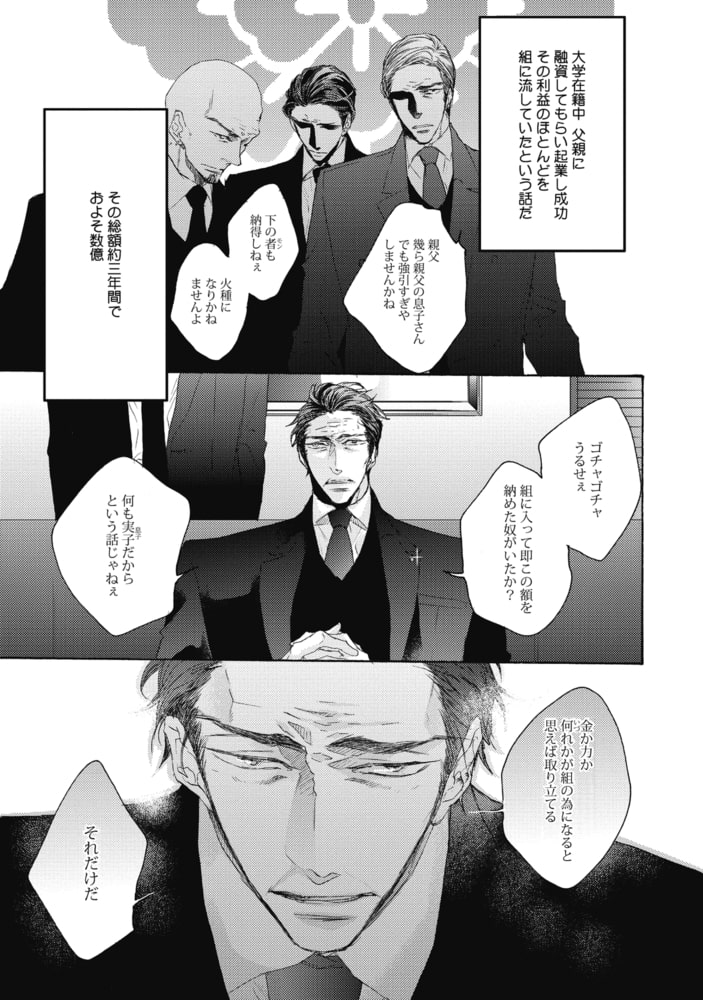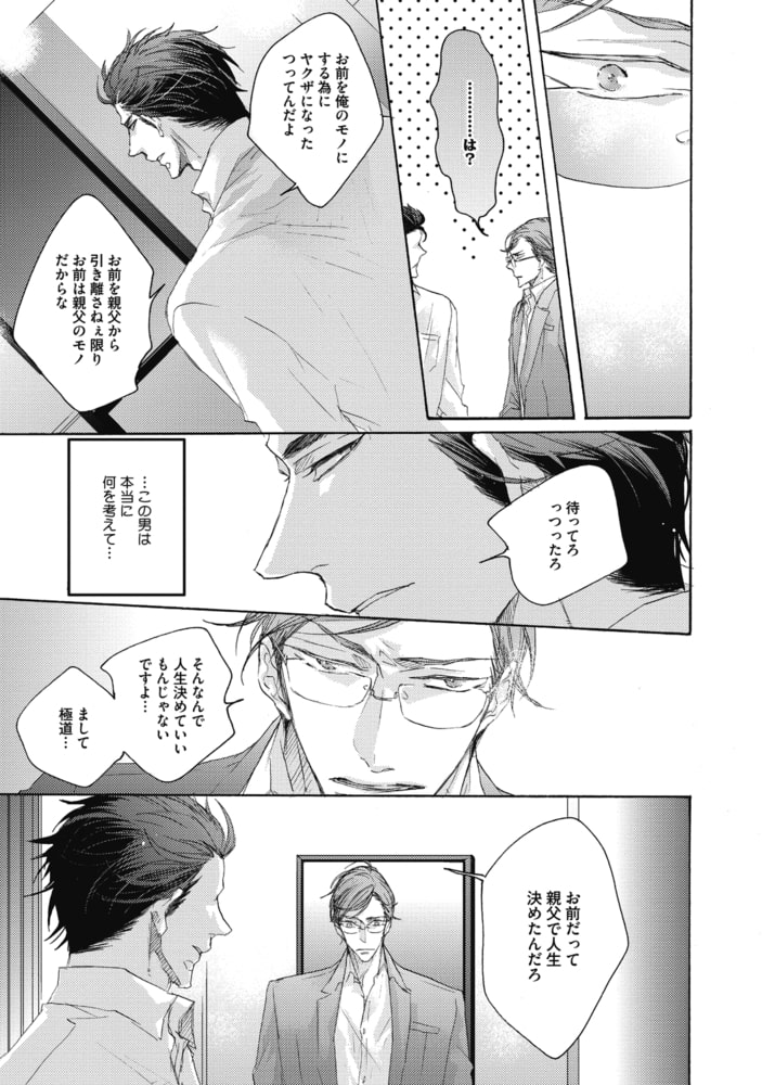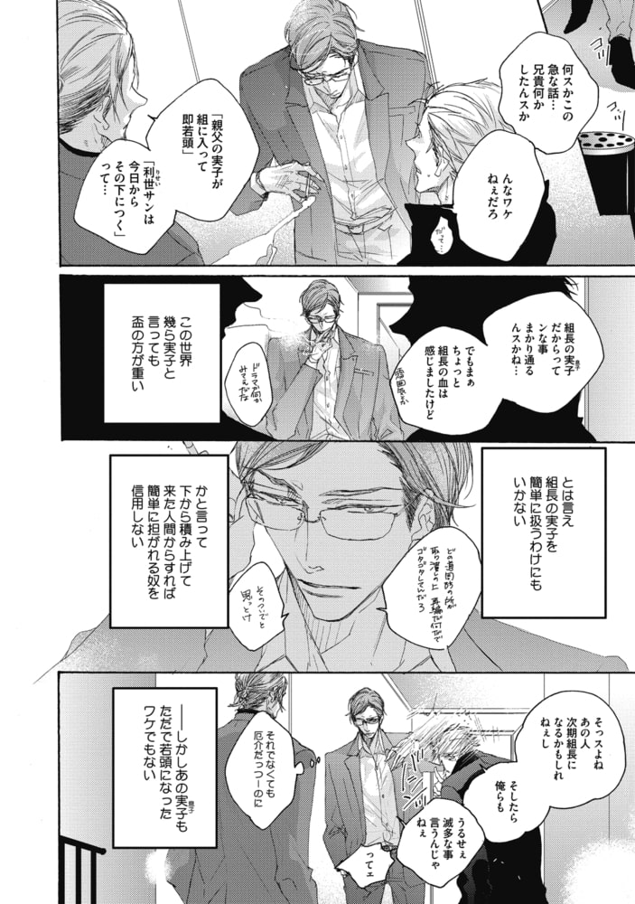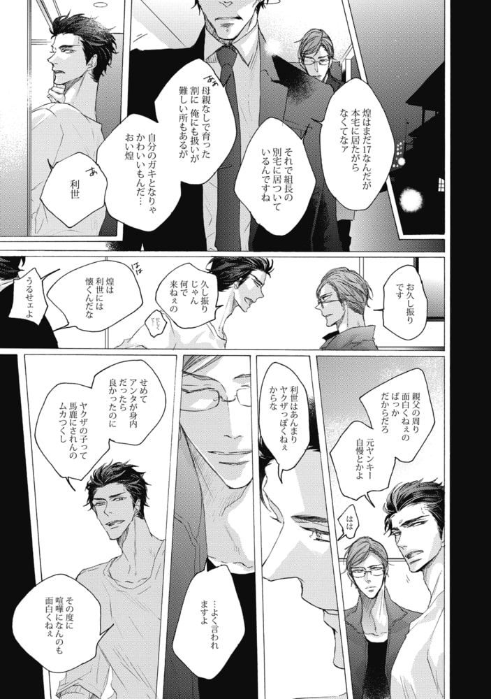 かつて自分と体の関係を持っていた相手、煌が組の若頭として利世の前に現れた。組長の願いで、カタギとして育てるため面倒をみていた利世は、面食らいつつも煌の下に付くように指名される。ヤクザ家業を嫌っていたはずの煌が、なぜ若頭になったのか疑問を抱いた利世だったが「お前を俺のものにするため」だと宣言され…!?