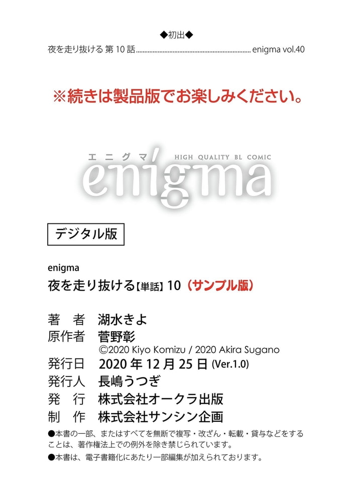 【本作はWEB雑誌「enigma」及び、enigmaコミックス「夜を走り抜ける」に収録されています。重複購入にご注意ください。】