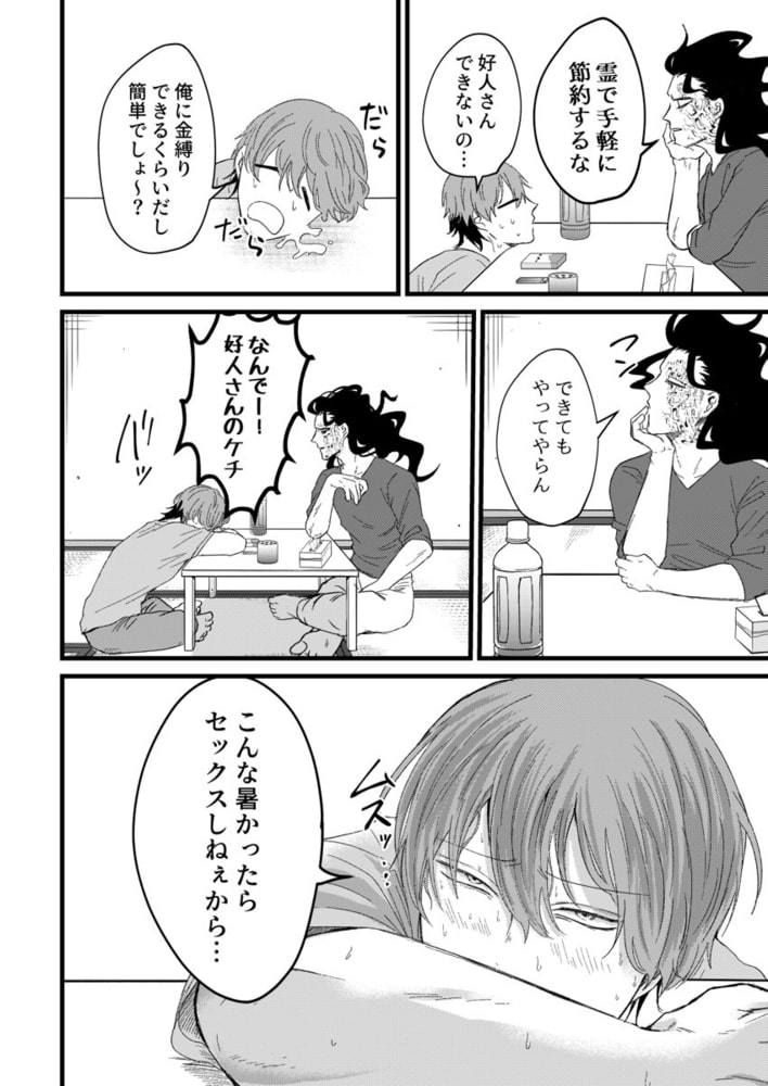 「めちゃくちゃ突きまくってやるから…」そう言ってクズ大学生は、俺の奥を何度も何度も突き上げる…そう、死んでいる俺の奥を。瀬屑 好人(せくず よしと)、29歳。目が覚めたら自室で幽霊になっていた。しかも部屋からは出られない地縛霊だ。入居者は追い出し自分の居場所を守ってきたが、とうとう出ていかない相手が現れた!21歳の大学生・伊藤 拓海(いとう たくみ)だ。幽霊である瀬屑に触れられるばかりか、「セックスして先にイった方の負け。俺が先にイッたら出てってあげっから」と賭けを持ちかけてくる。どうしても出ていかせたい瀬屑は賭けに乗るが…!?