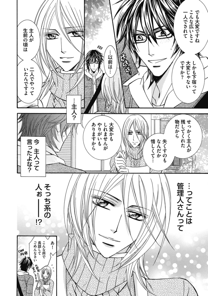 実家が中途半端に遠いため、下宿を決めた大学生・塚本啓太。その松原荘を守るのは、亡き夫に調教された未亡人(♂)・松原伊織。可憐で美人で貞淑なのに淫乱な伊織に、恋心と勃起を抑え切れない塚本。どスケベ住人どもにSEXを阻まれたり乱交に巻き込まれたり…塚本と伊織の明日はどっちだ!?