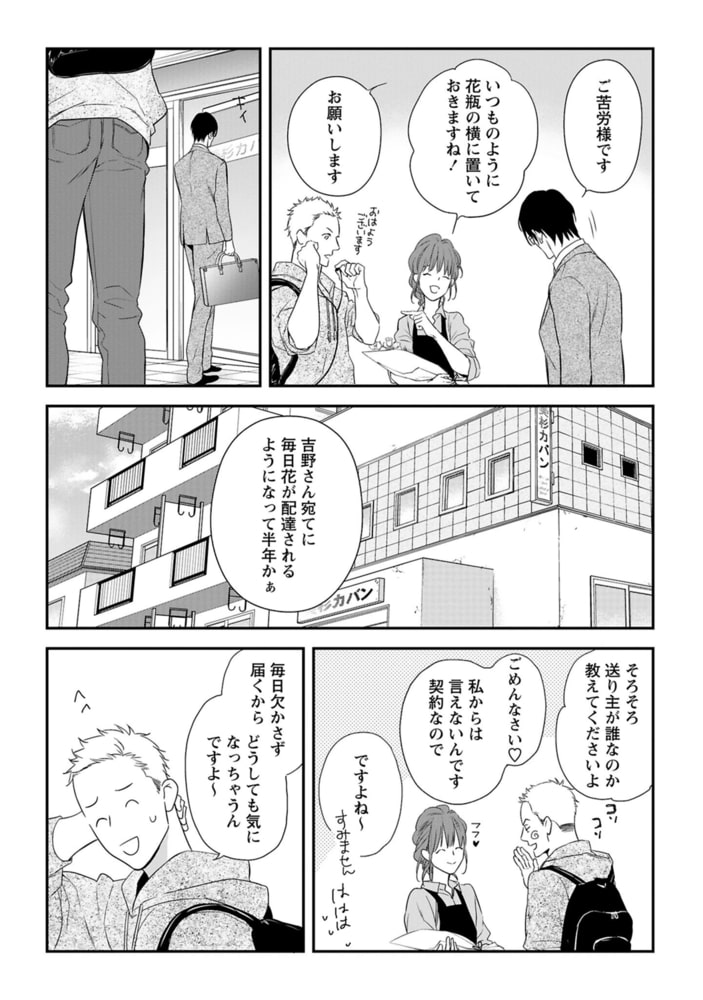 日本に戻り、美杉カバンでの日常を取り戻しつつあった直純だが、ある日から毎日花が一輪届くようになった。