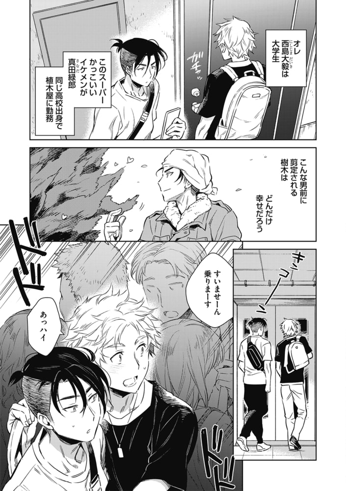 ●伍堂なめ[オレの彼氏とののろけを聞いてくれ 第1話]大学生のダイキは世界一カッコいい恋人の緑郎にベタ惚れで好きが止まらない毎日!