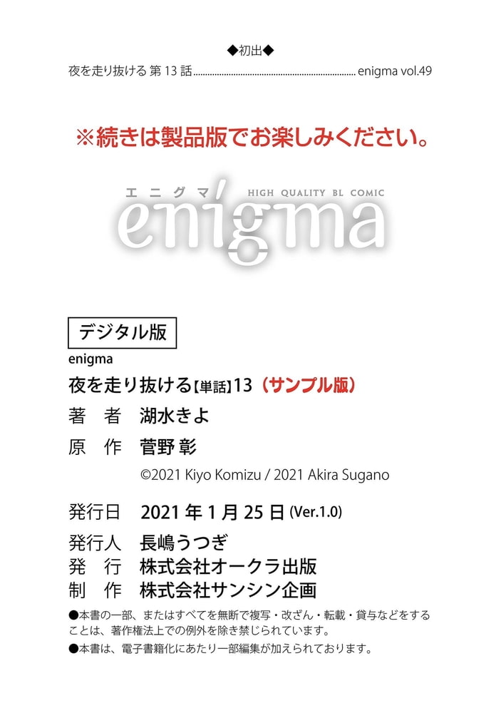 【本作はWEB雑誌「enigma」及び、enigmaコミックス「夜を走り抜ける」に収録されています。重複購入にご注意ください。】