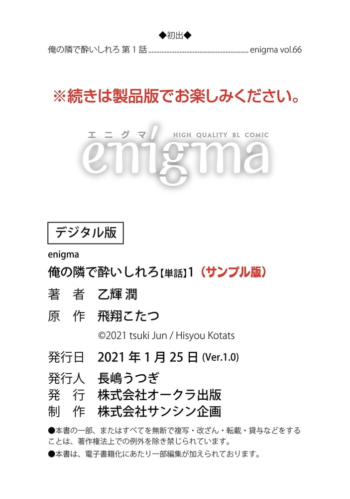 【本作はWEB雑誌「enigma」に収録されています。重複購入にご注意ください。】