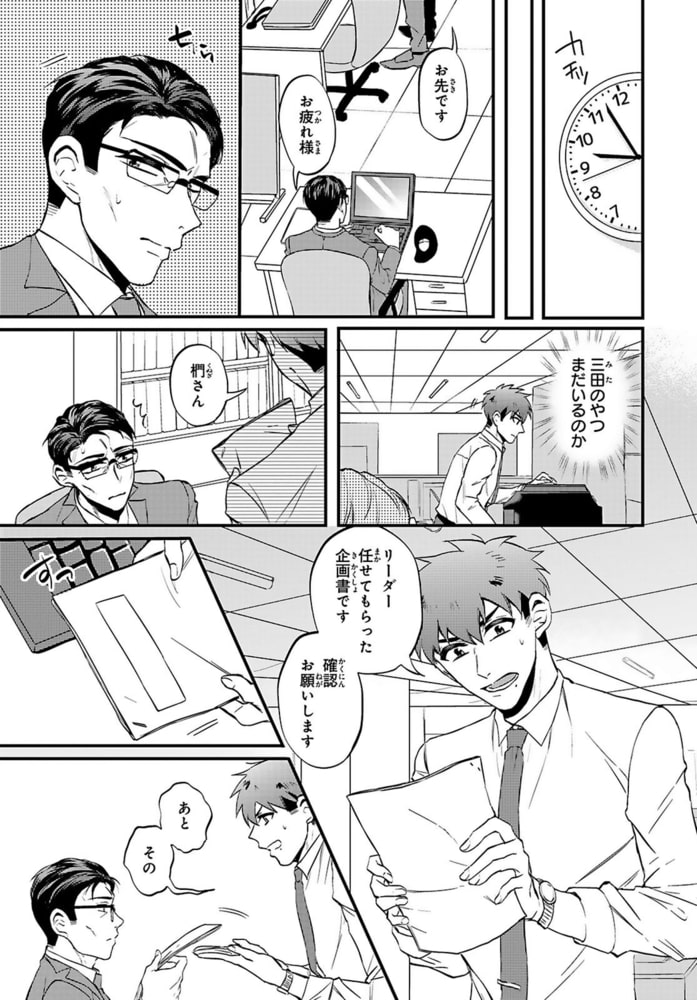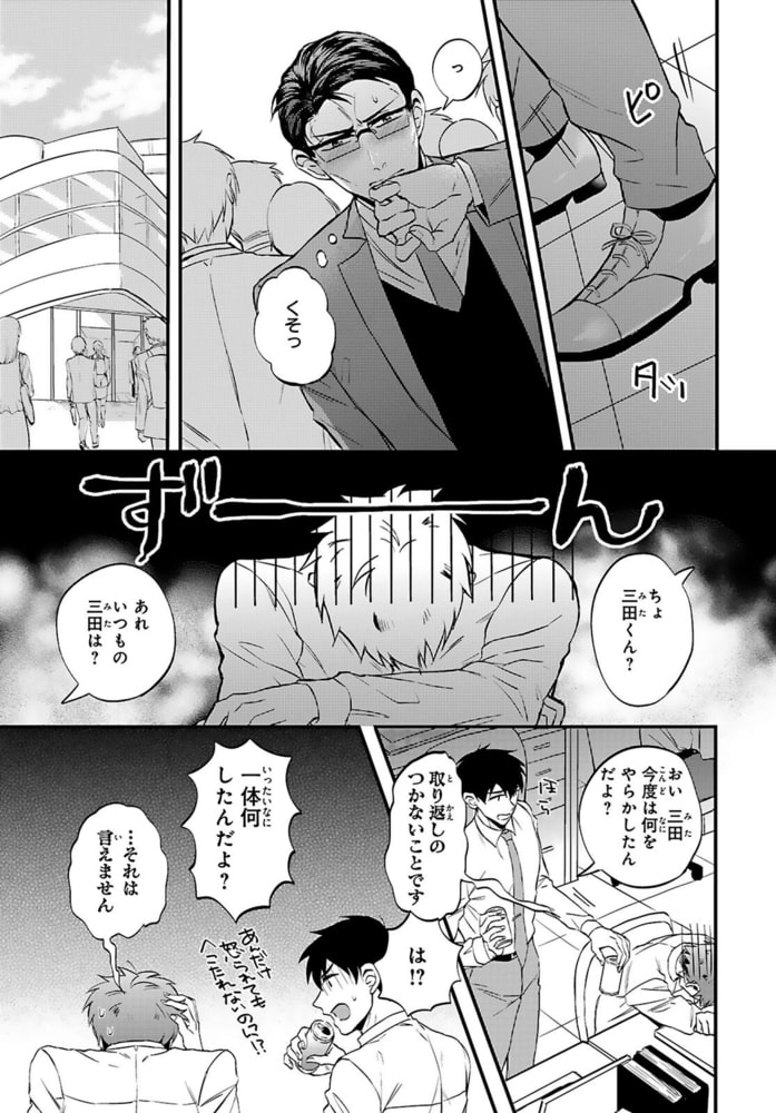 「なんで俺なんだ…!!」今月に入ってからなぜか痴○に遭うようになってしまった椚 弘(くぬぎひろむ)。おっさんの尻なんて触って何がいいのかさっぱりわからないまま今日も耐えていたが、痴○がお尻だけではなく股間のほうへ手を這わせてきて…焦る椚を助けてくれたのは…部下の三田!?よりによって直属の部下に助けられた椚はごまかそうとするもごまかしきれず…三田の勢いに押されボディーガードを頼むことに。しかし三田は仕事でミスが多く、椚の怒りをしばしば買うタイプで…不安に思いながらも徐々に三田を信用し始め…。ある日また痴○に遭ってしまい、助けを求めるも今度は三田が椚を痴○していて…!?