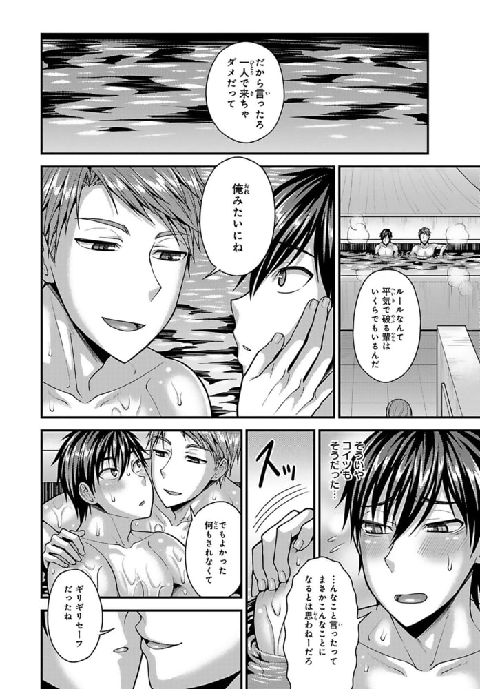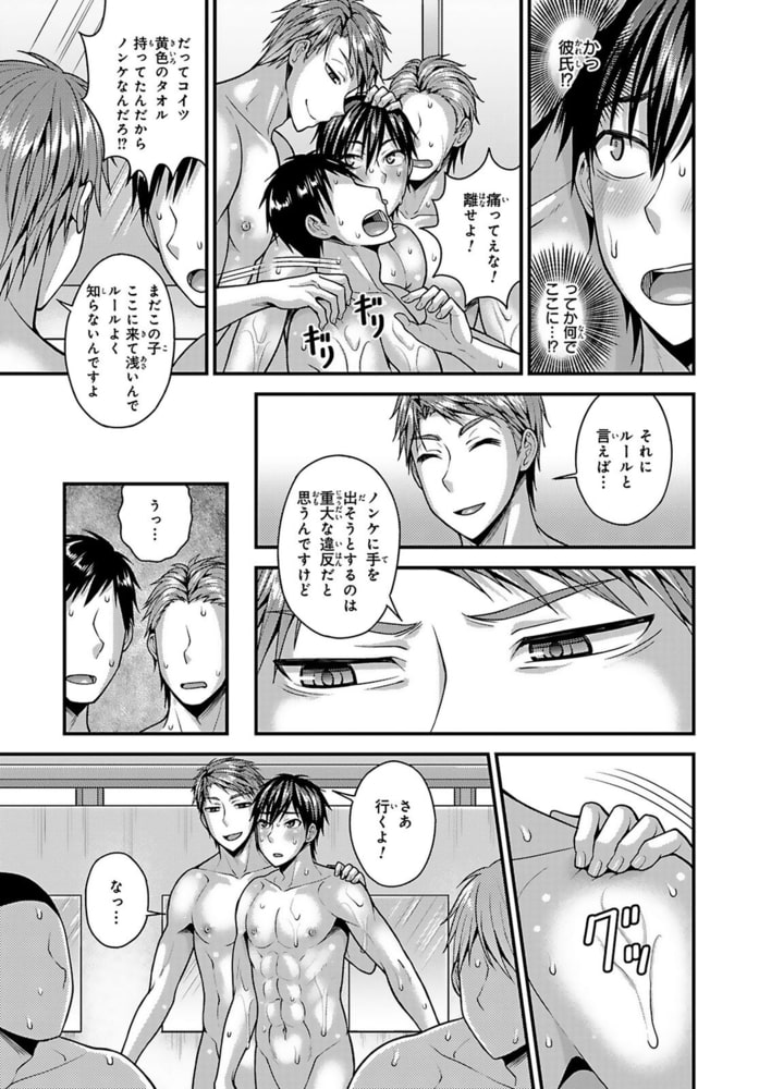 「白いタオル、それってOKのサインだよね?」近所唯一の銭湯はハッテン場!?ルールを知らずに入ってしまった上京ノンケ、貞操の危機――!アクション俳優を目指し、意気揚々と上京してきた湯沢稜己。上京初日の買い物にいく際中、自転車に水を掛けられてずぶ濡れになってしまう。家のボロアパートには風呂が無いため仕方なく近所の銭湯に向かうと、さっき水を掛けてきた男・野上将吾と再会して!?怒ってはいたものの自慢の筋肉を褒められ、意外といい奴…?と気を許した瞬間、アソコを掴まれ扱かれてしまう!突然のことに抵抗するも、将吾は全然止めてくれないどころか尻を掴まれ舌でナカを解され…嫌なのに下半身は反応してしまい!?