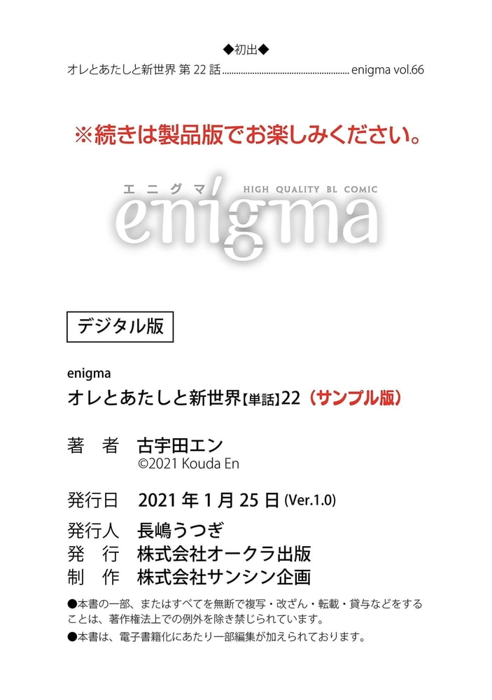 【本作はWEB雑誌「enigma」及び、enigmaコミックス「オレとあたしと新世界」に収録されています。重複購入にご注意ください。】