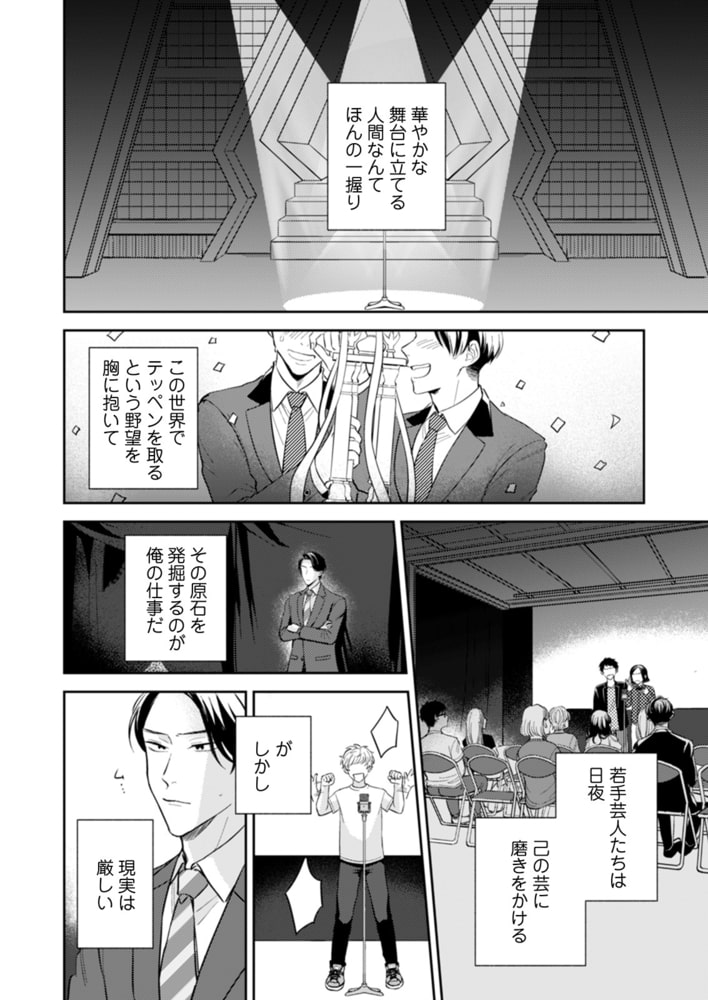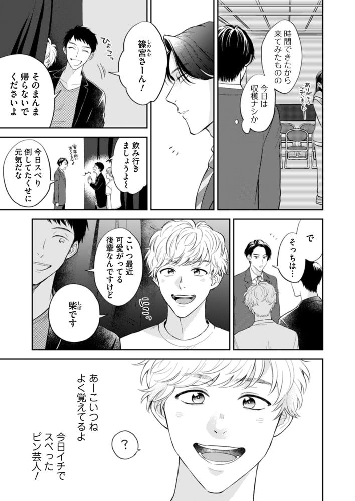 お笑い芸人のマネジメントをしているゲイの篠宮は、業界内の人間には絶対に手を出さないというポリシーを持っていた。しかし有望株がいないかとスカウトにきたお笑いライブで、クスッとも笑えないけど顔だけはめちゃくちゃドストライクのバカ芸人、柴と出会ってしまう。理性と欲望の間で葛藤する篠宮はつい悪戯心が芽生えて…。