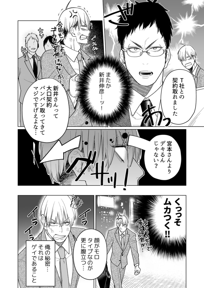 エリートを自負するサラリーマン・宮本には秘密がある。それはゲイであること。そして、ピンサロで働いていること。元カレの借金返済をする為に始めたピンサロの仕事だけど、SEX大好きな宮本には天職。No.1になって順調に借金を返済していた。そんなある日、会社のムカつく後輩・新井が客としてやってきて!?しかも、宮本のことを好きだって告白してきて――!?新井なんて後輩の癖に宮本より仕事が出来てプライドに障る。そんな存在だったはずなのに…。耳元で甘く囁かれて、弱いトコばっかりエロく触られたら気持ち良くてイッちゃう……って!ダメだ!流されてたまるか!簡単には絆されてやらないんだからな!!!――ピンサ○リーマンに注がれる溺愛の行方はどうなる?