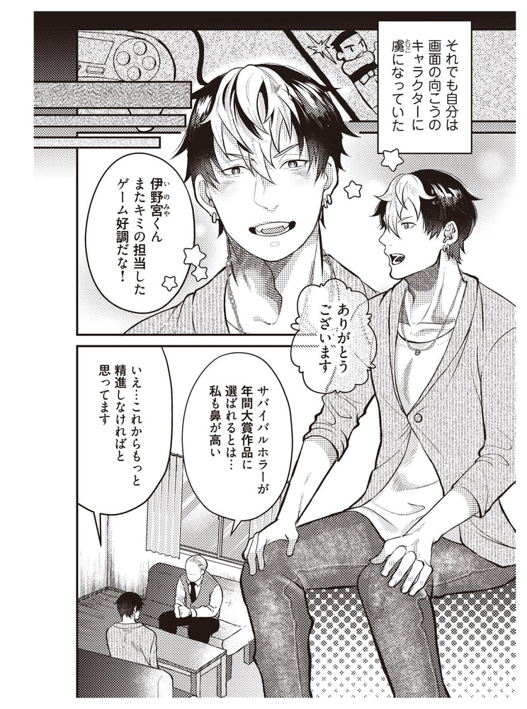 恋愛ゲームにすら携わったことがないのに……。BLという未知のジャンルに戸惑いつつも、社長の期待に応えるべき奮起する隼人。