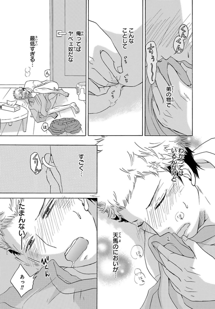 可愛がっていた、俺が守ってやらないとと思っていた。そんな弟に組み敷かれ縛られ、ア●ルを開発されてしまい――。喧嘩には自信があるヤンキーの周人と、成績優秀な優等生の天馬は、全てが正反対だが仲の良い義兄弟。それなのに、失恋して泣いていた兄をみた瞬間、天馬の中で何かが壊れ…。抑えつけ無理やり兄のモノをしゃぶる天馬。更に、ア●ルを弄り始め!?必死に抵抗するけど全く敵わない!痛がる兄に「痛そうだったから、これ。」と持ってきた電マを押し当て!与えられたことの無い振動に快感が全身を走り…一気に吹きだすしおに頭が飛びそうな中、容赦なくナカを擦られ…義弟に処女を奪われ、兄としての威厳もプライドもへし折られ――。